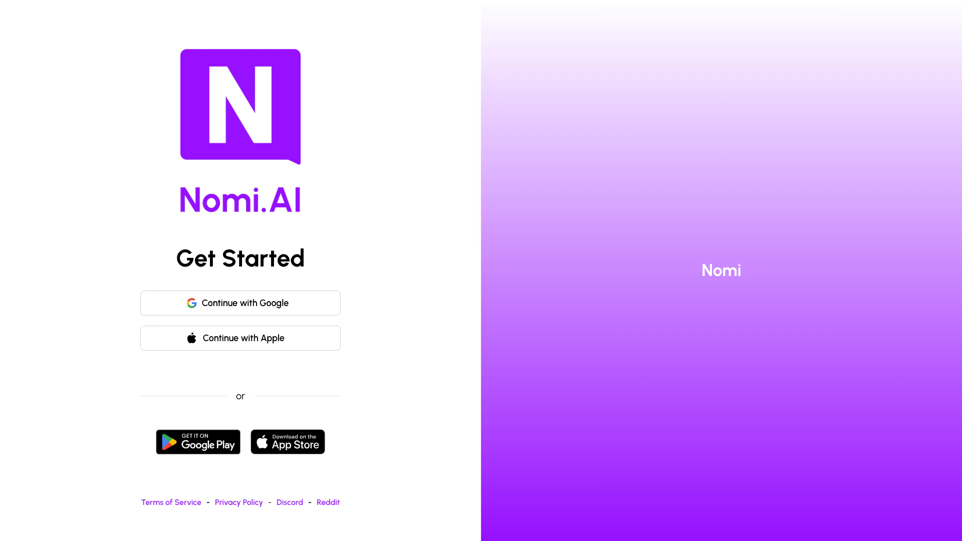 - User-Friendly Sign-In Options: Nomi.ai offers multiple sign-in options including Google and Apple, making it easy for users to access the platform.