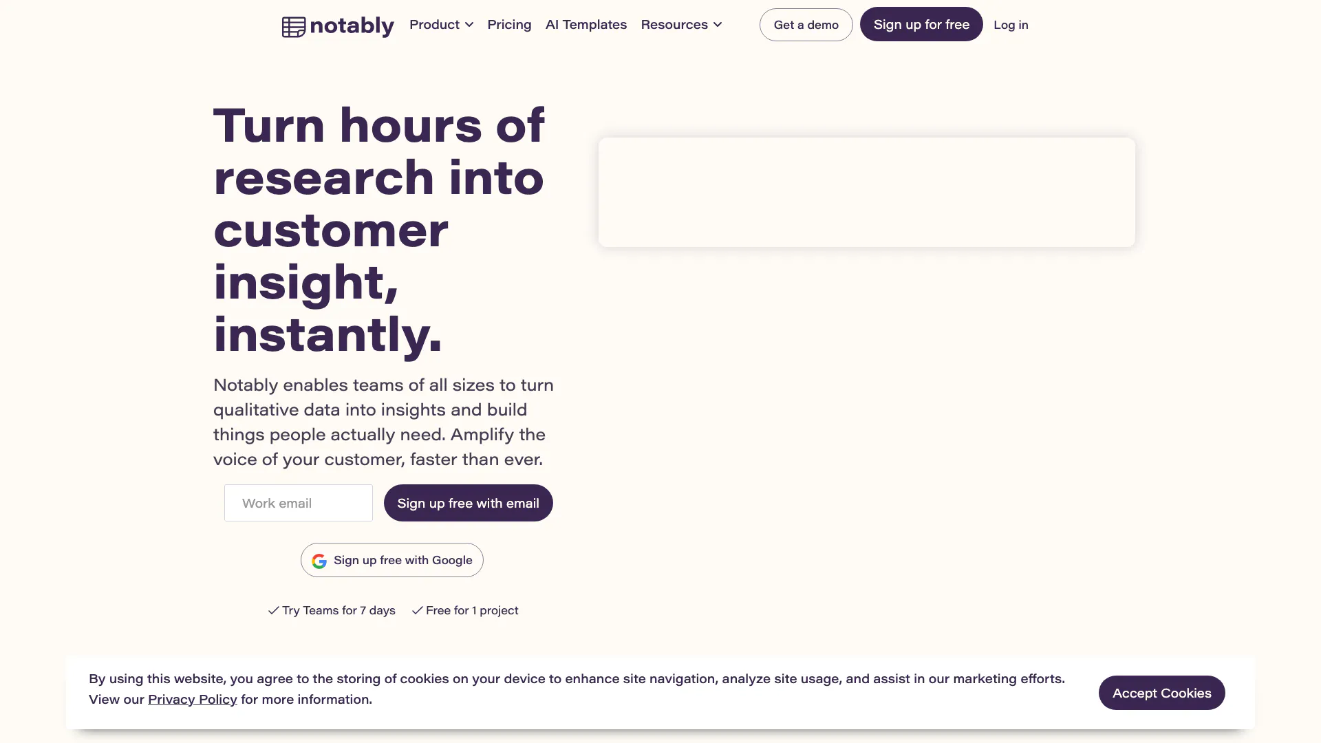 Notablyai is an all-in-one research platform designed to help researchers quickly derive insights from qualitative data using artificial intelligence. It streamlines the research process, enabling users to transform messy data into meaningful insights efficiently. The platform caters to a variety of research needs, from product development to academic studies, making it a versatile tool for teams of all sizes.