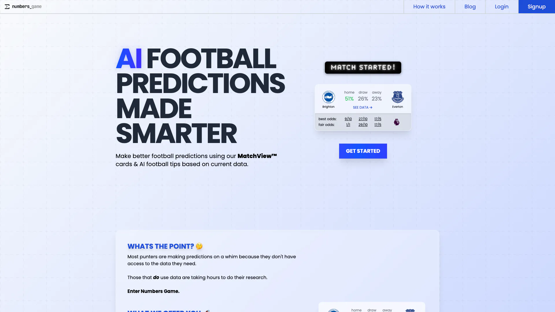 Numbers Game is a website that presents football statistics, analysis, AI football predictions, and odds to subscribers. Our football predictions are based on a machine learning algorithm that analyses historical data to predict the outcome of matches.