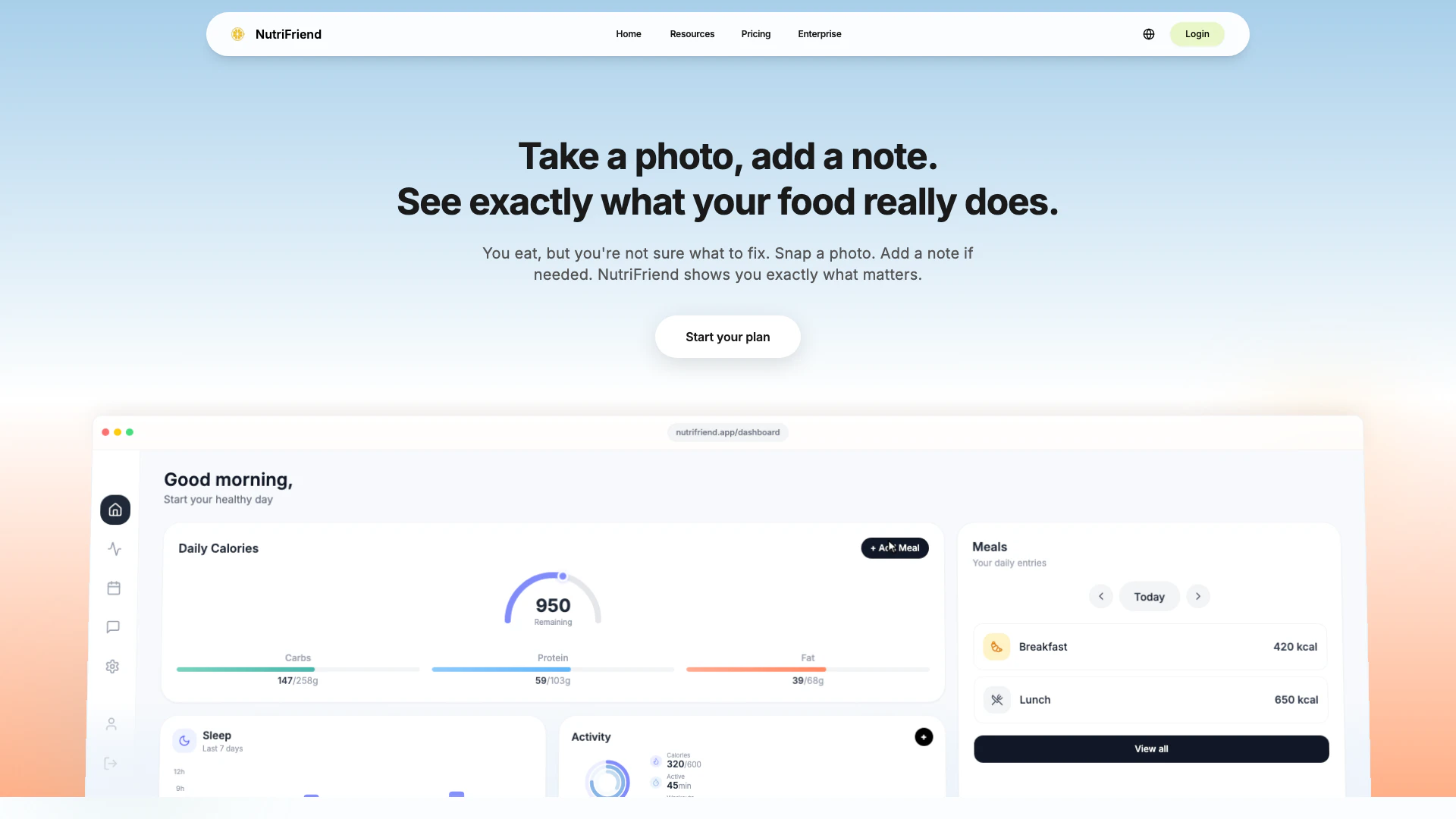 - Smart Meal Analysis: NutriFriend uses AI to analyze meals through photos or descriptions, providing accurate nutritional insights.