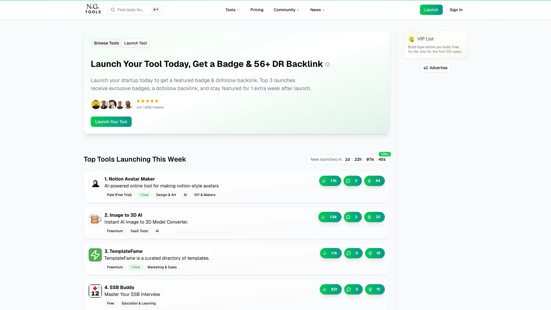 - If you are a developer or startup, click on 'Launch Your Tool' to submit your product for a featured badge and backlink.
