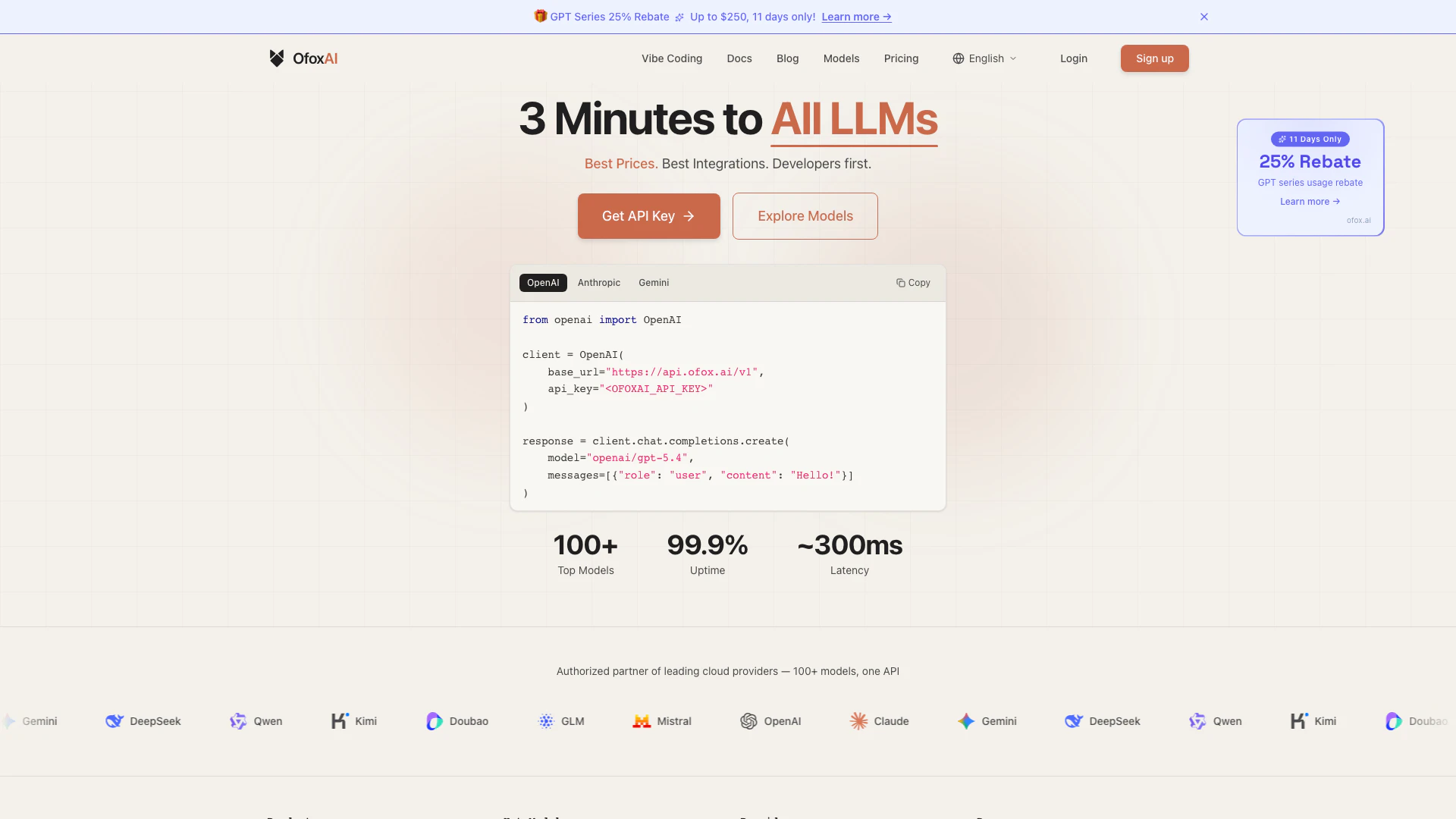 - Unified API Access: Ofoxai provides a single API gateway to access over 100 models including GPT-5.4 and Claude Opus 4.6, simplifying integration for developers.