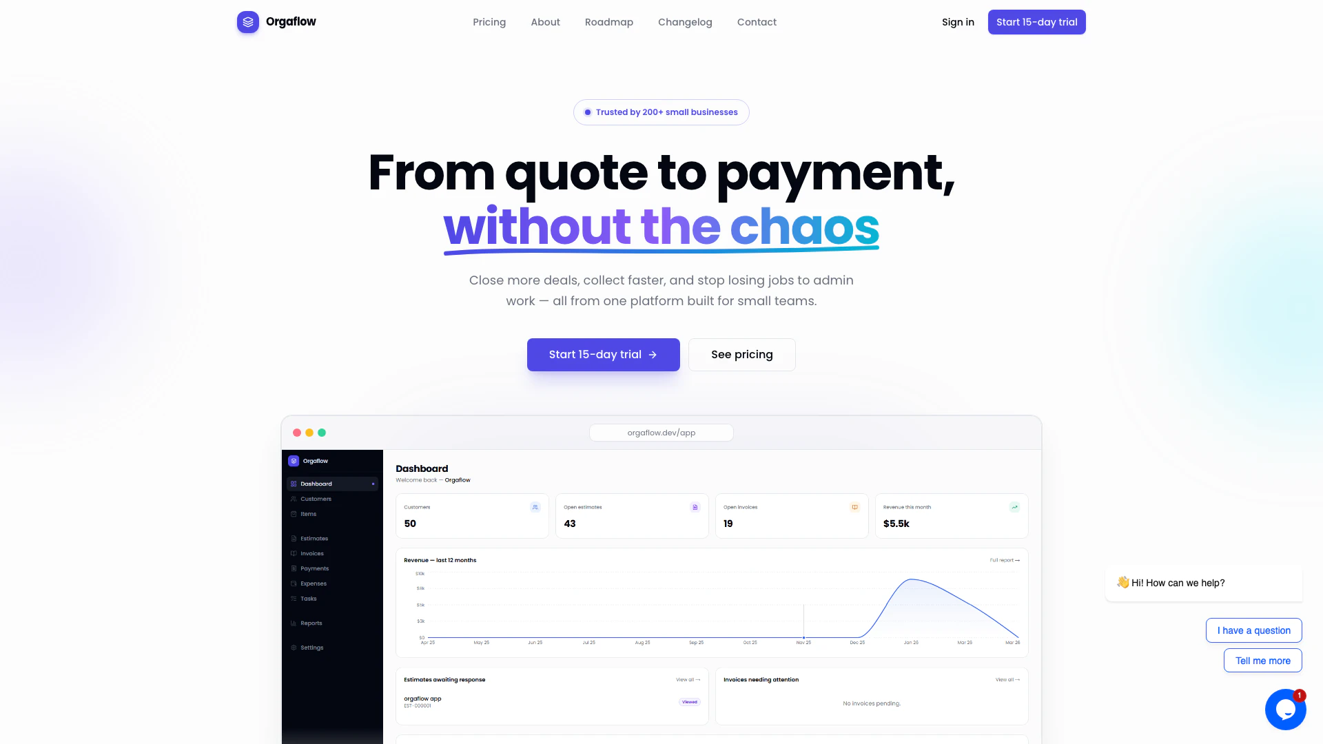 Orgaflow is an all-in-one customer relationship management (CRM) tool designed specifically for small businesses. It streamlines the entire workflow from creating estimates to sending invoices, accepting payments, managing tasks, and automating workflows. By integrating these essential functions into a single platform, Orgaflow helps small teams close deals more efficiently, reduce administrative chaos, and enhance productivity.