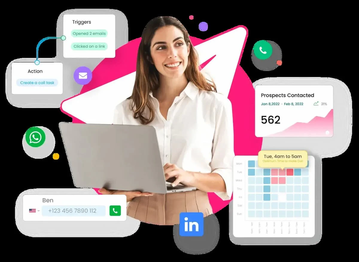 - Multi-Channel Outreach: Engage prospects through various channels including email, phone, SMS, and social media.