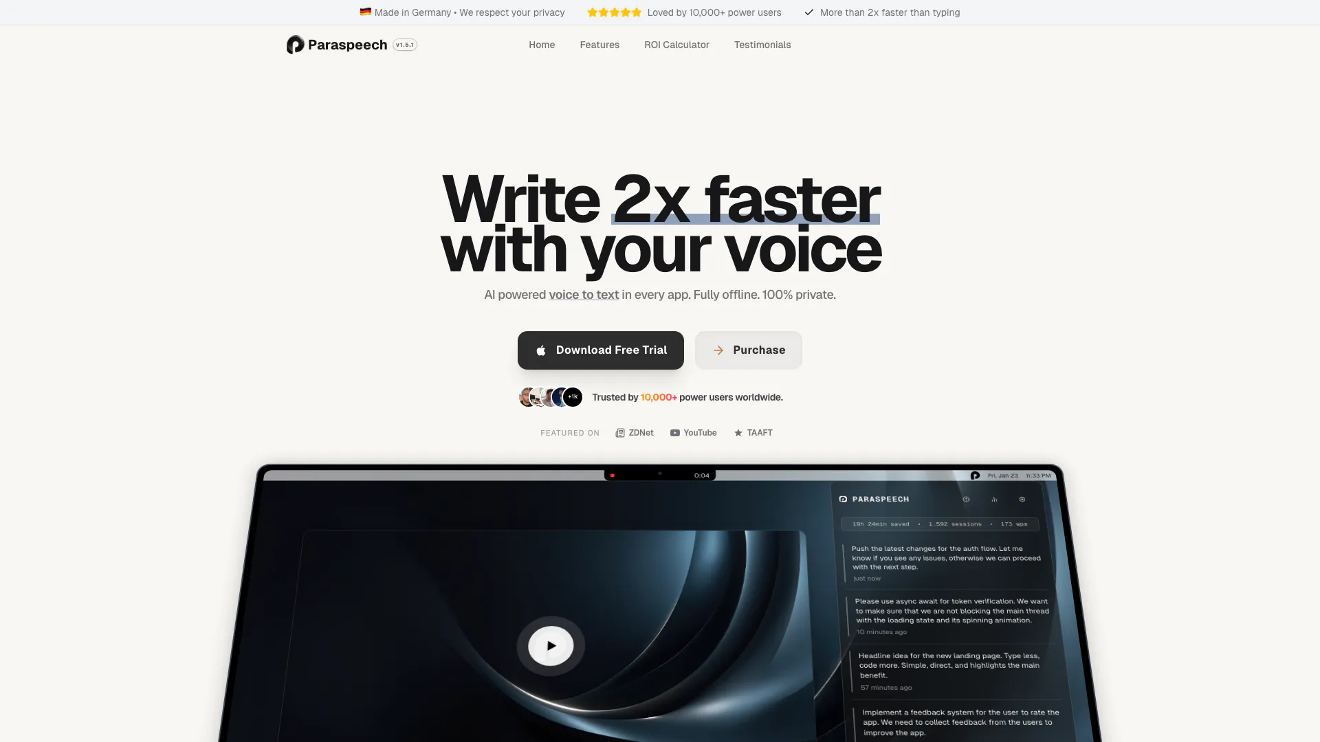 - Ultra-Fast Transcription: Paraspeech offers transcription speeds over 2x faster than typing, allowing users to write with their voice efficiently.