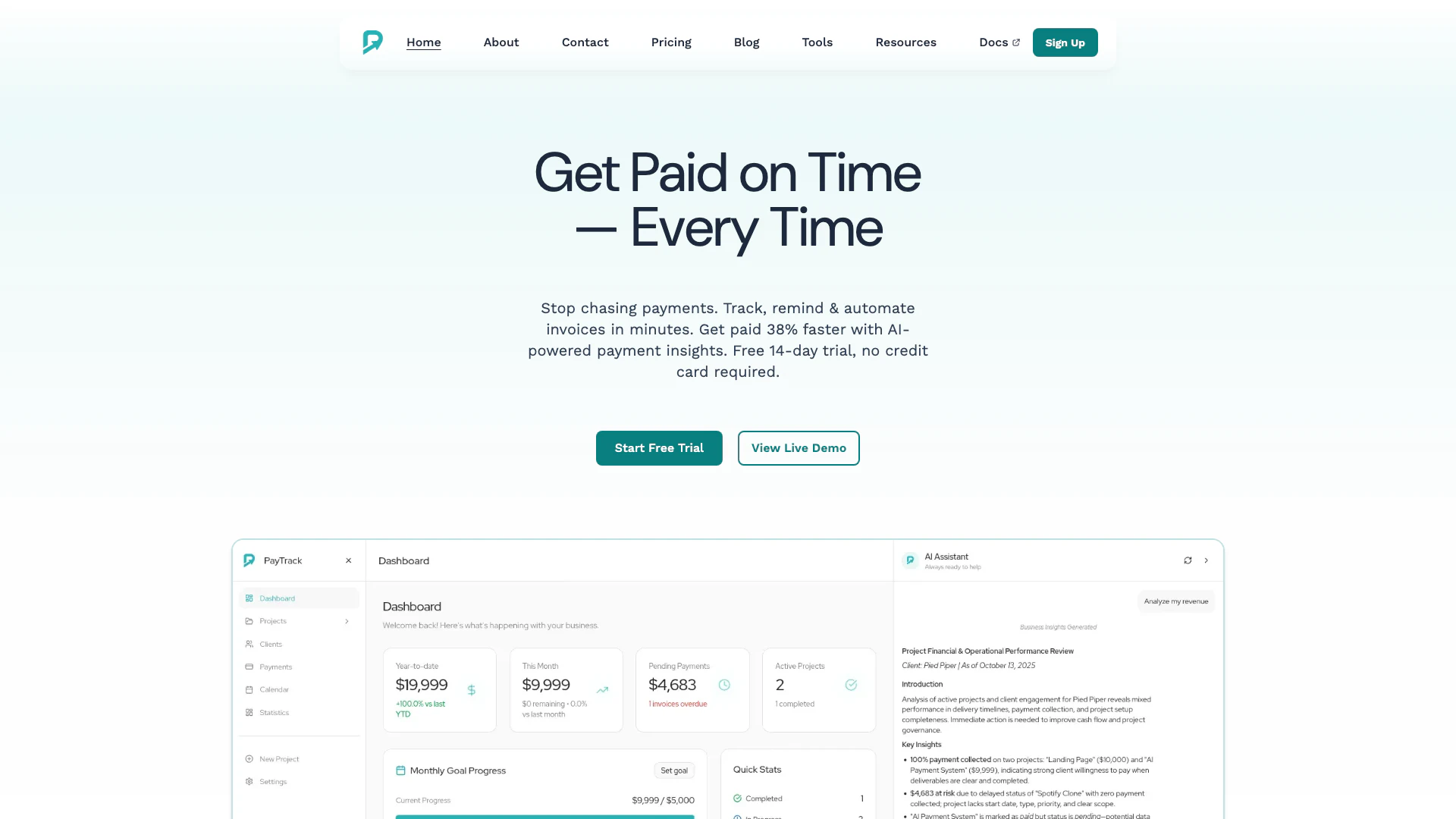 - AI-Powered Payment Tracking: Pay-track utilizes AI technology to provide real-time payment tracking and insights, helping users get paid 38% faster.