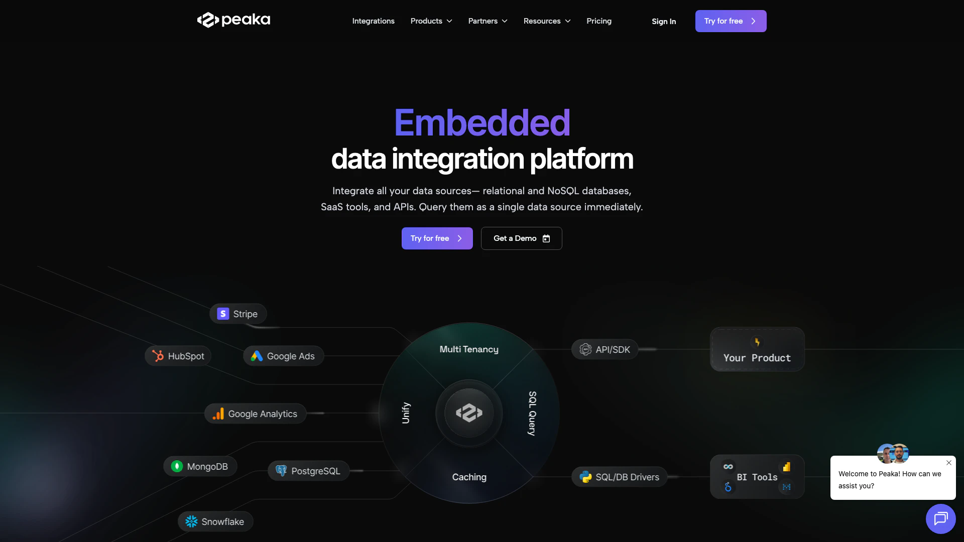 Peaka is a powerful data integration[1] platform designed to consolidate various data sources, including relational and NoSQL databases, SaaS tools, and APIs, into a single, unified data source. With its innovative zero-ETL[2] approach, Peaka allows users to query data directly from its source in real-time, significantly reducing the complexity and time involved in traditional data management processes. This platform is particularly beneficial for organizations looking to streamline their data operations without the need for extensive data engineering resources.