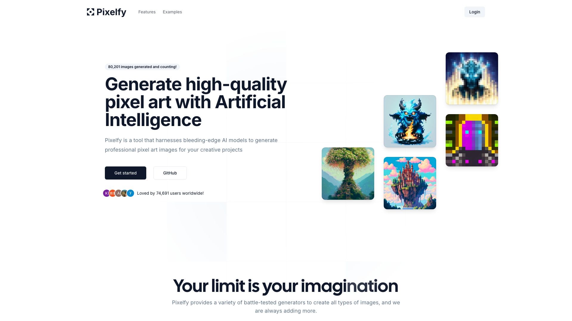 - High-Quality Image Generation: Pixelfy utilizes cutting-edge AI models to create professional pixel art images suitable for various creative projects.