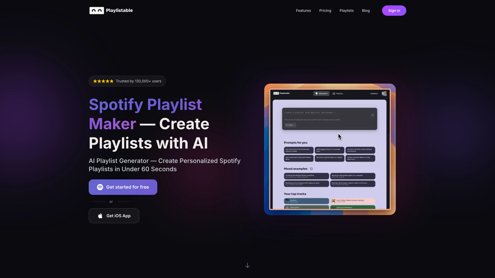 Playlistable is an advanced AI-powered Spotify playlist maker that allows users to create personalized playlists[2] in under 60 seconds. By utilizing AI technology, Playlistable analyzes millions of tracks to generate playlists tailored to the user's mood, favorite artists, or songs. This innovative tool enables users to save their generated playlists directly to their Spotify accounts, making music curation[3] seamless and efficient.