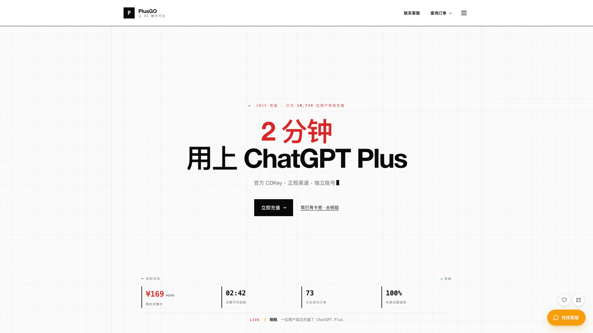 - Fast Recharge Process: PlusGO offers an average recharge time of just 2 minutes, allowing users to quickly access ChatGPT Plus without long waiting periods.