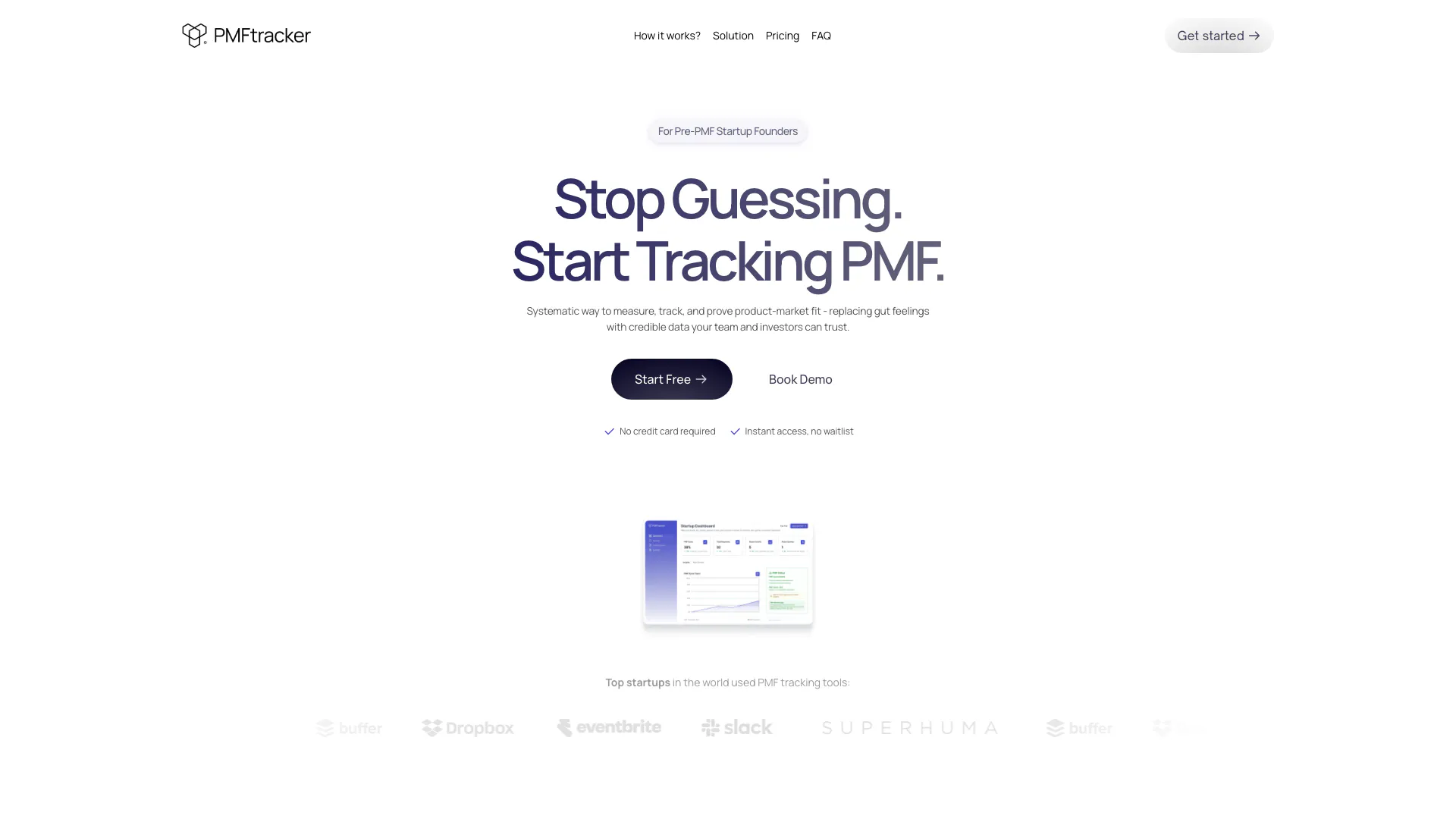 Pmftracker is a systematic tool designed to track and validate product-market fit (PMF) for startups. It replaces intuition and gut feelings with credible data that can be trusted by teams and investors. By employing a structured approach, Pmftracker allows businesses to measure their PMF through surveys and quantitative metrics, ensuring that they understand their audience and validate their product hypotheses effectively.