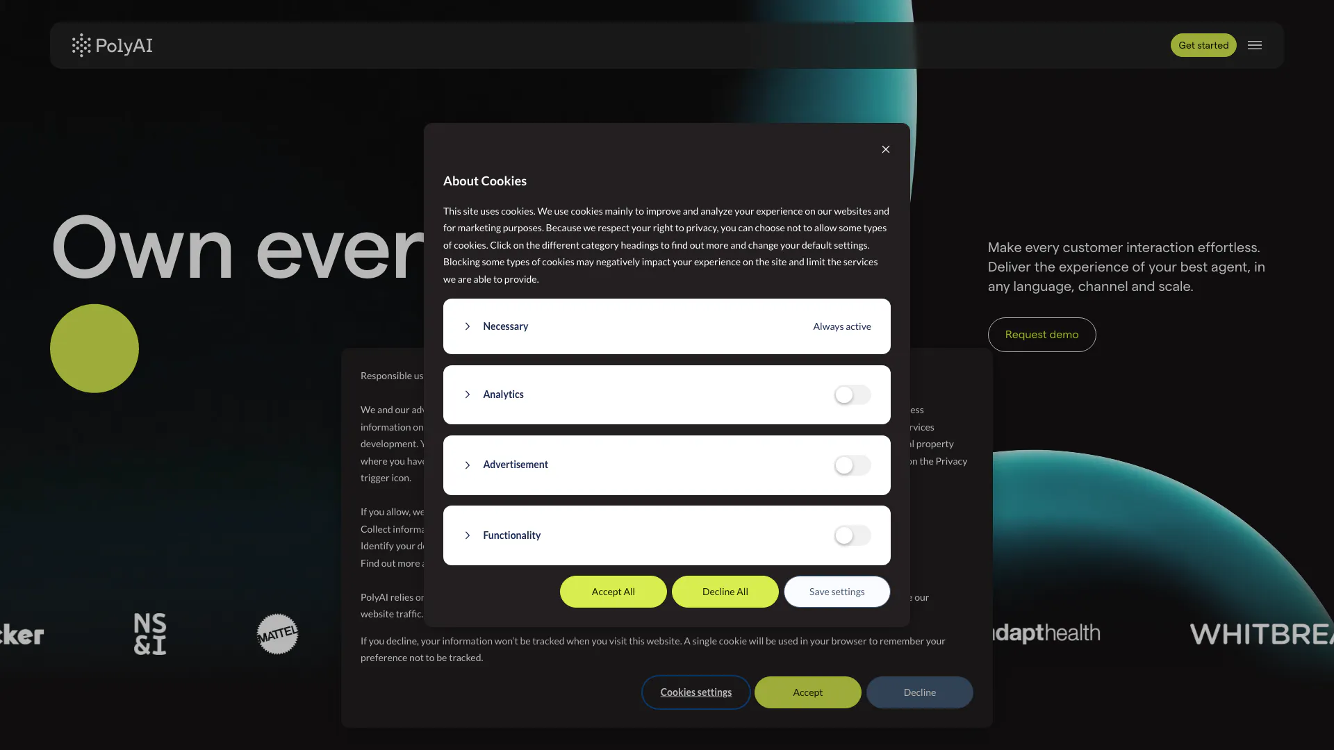 - Omnichannel Coverage: PolyAI allows you to create a custom agent once and deploy it across various channels such as voice, chat, and SMS without needing to rebuild or reconfigure.