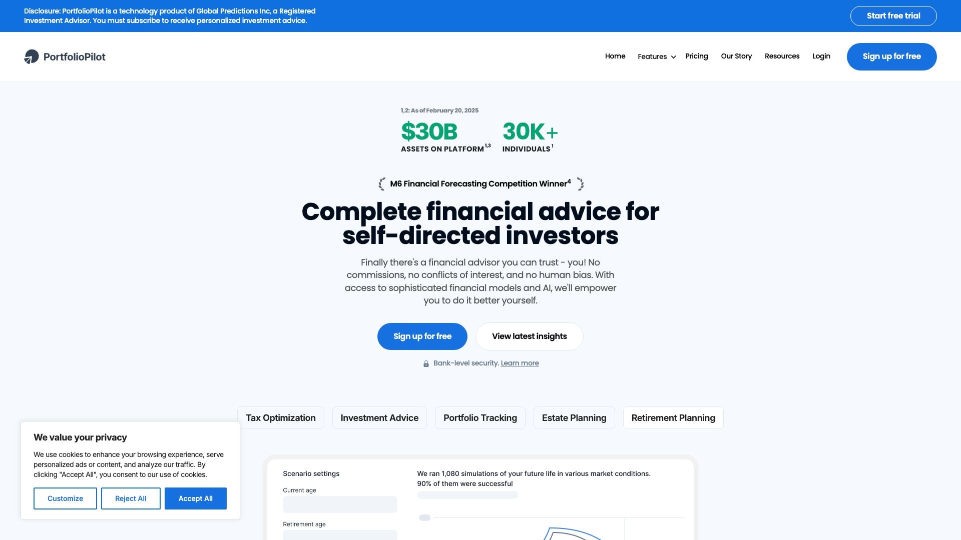 PortfolioPilot, powered by Global Predictions technology, is an AI Financial Adviser that provides investors with hedge fund inspired insights to improve your portfolio and net worth.