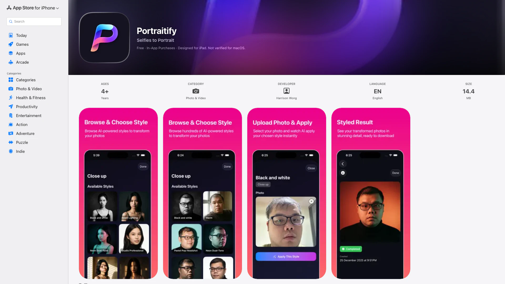 - User-Friendly Workflow: The app features a simple and fast workflow that allows users to generate portraits without any photo editing skills, making it accessible to everyone.