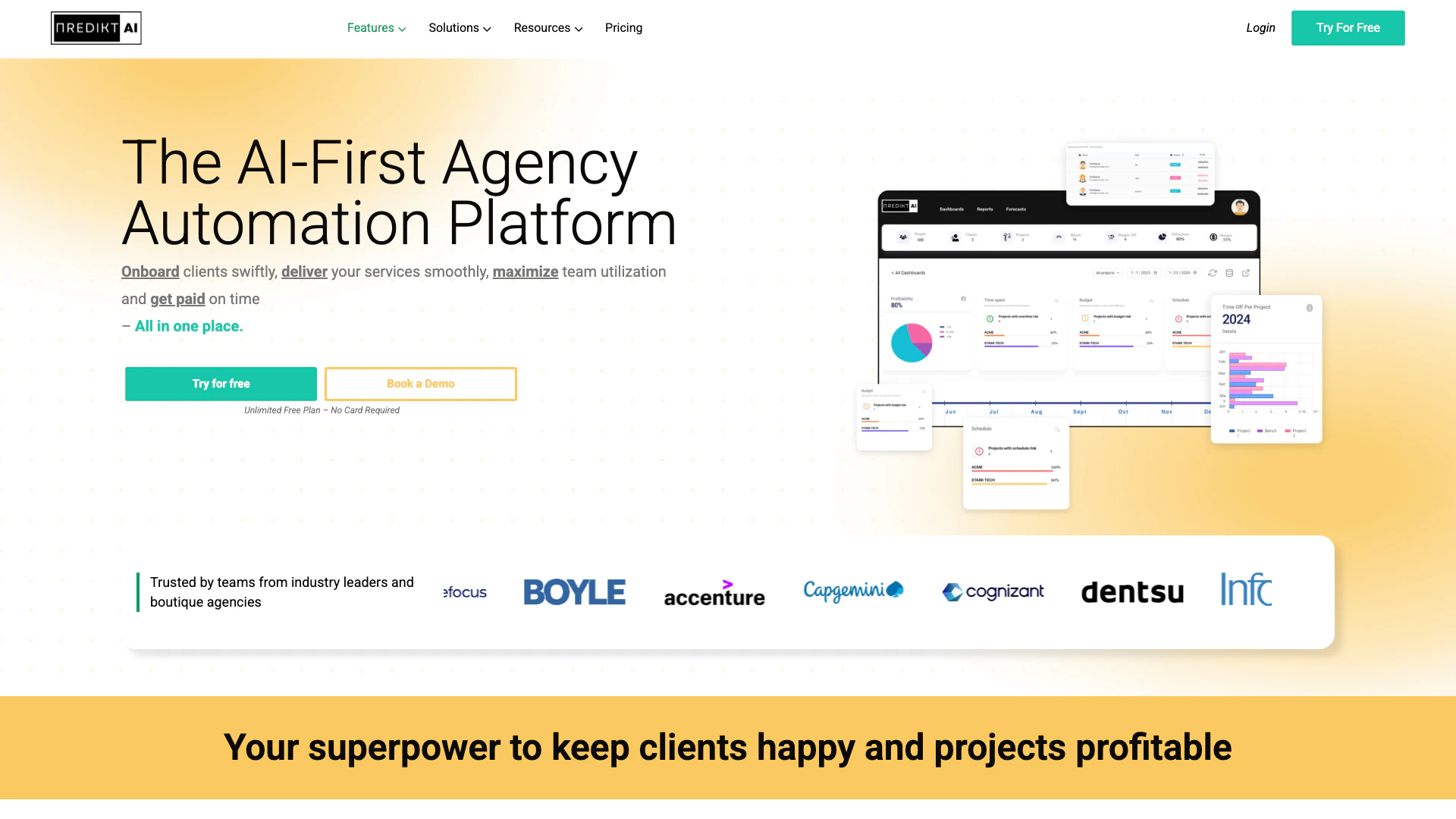 - Streamlined Client Onboarding: Predikt AI simplifies the client onboarding process with accurate proposals generated in minutes, enhancing the sales-to-delivery handoff.