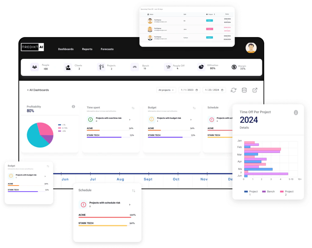 - Resource Management: Gain visibility into resource allocation and team workload to optimize efficiency.