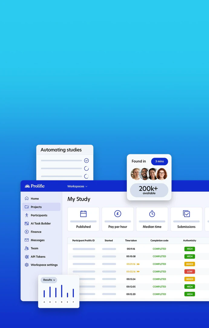 - Launch your study and invite participants from Prolific's diverse pool of verified individuals.