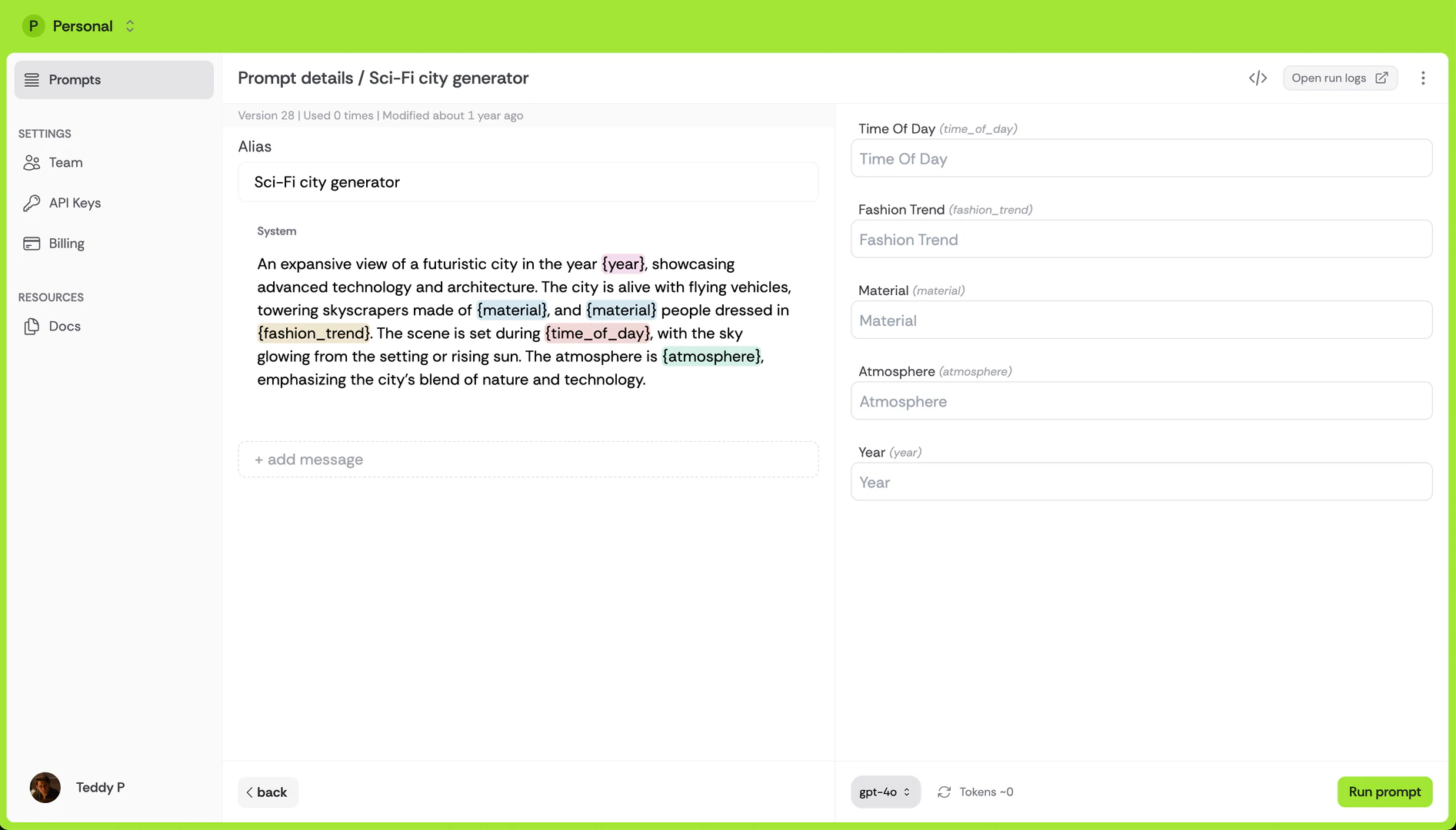 - Comprehensive Run Logs: Track every prompt execution with detailed logs for better insights.