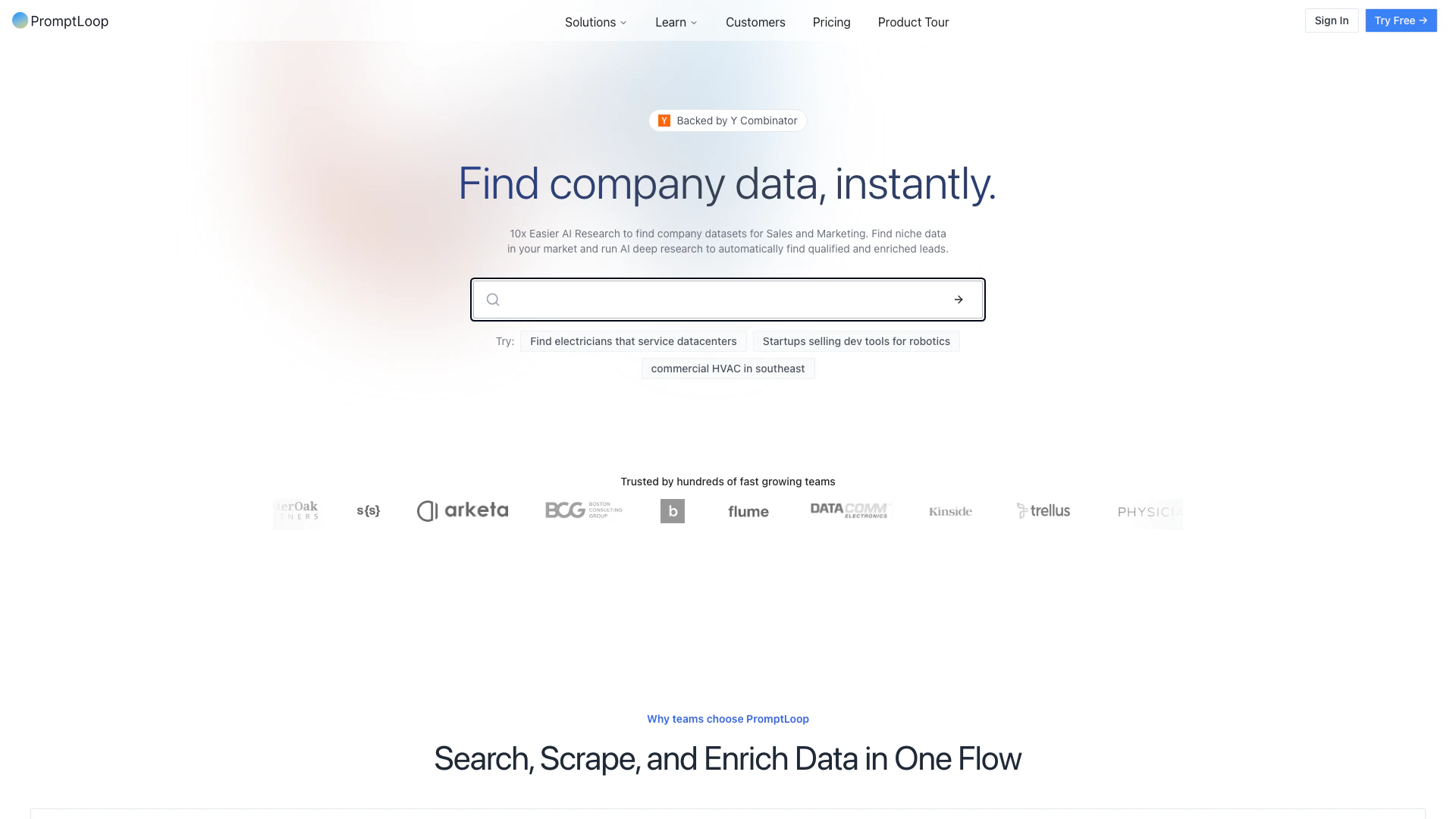 - Fast Data Processing: PromptLoop enables users to enrich datasets and conduct web scraping 10x faster than traditional methods, significantly speeding up B2B research.