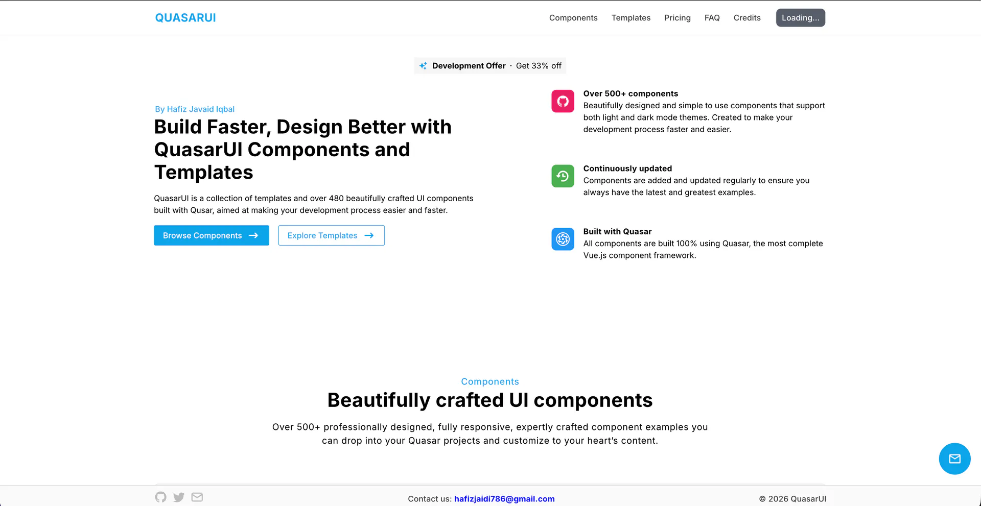 - Extensive Component Library: QuasarUI offers over 500 beautifully designed UI components, making it easy for developers to find the right elements for their projects.