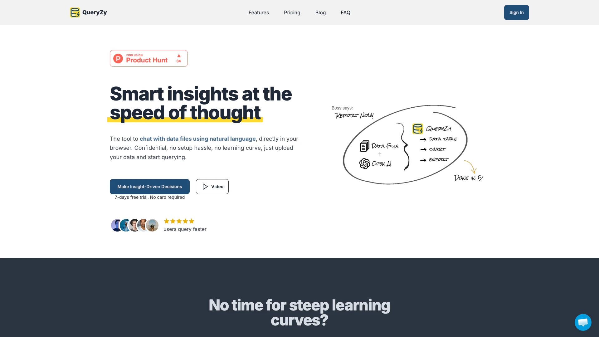 - Natural Language Queries: Queryzy allows users to interact with data files using natural language, simplifying the querying process without needing technical knowledge.