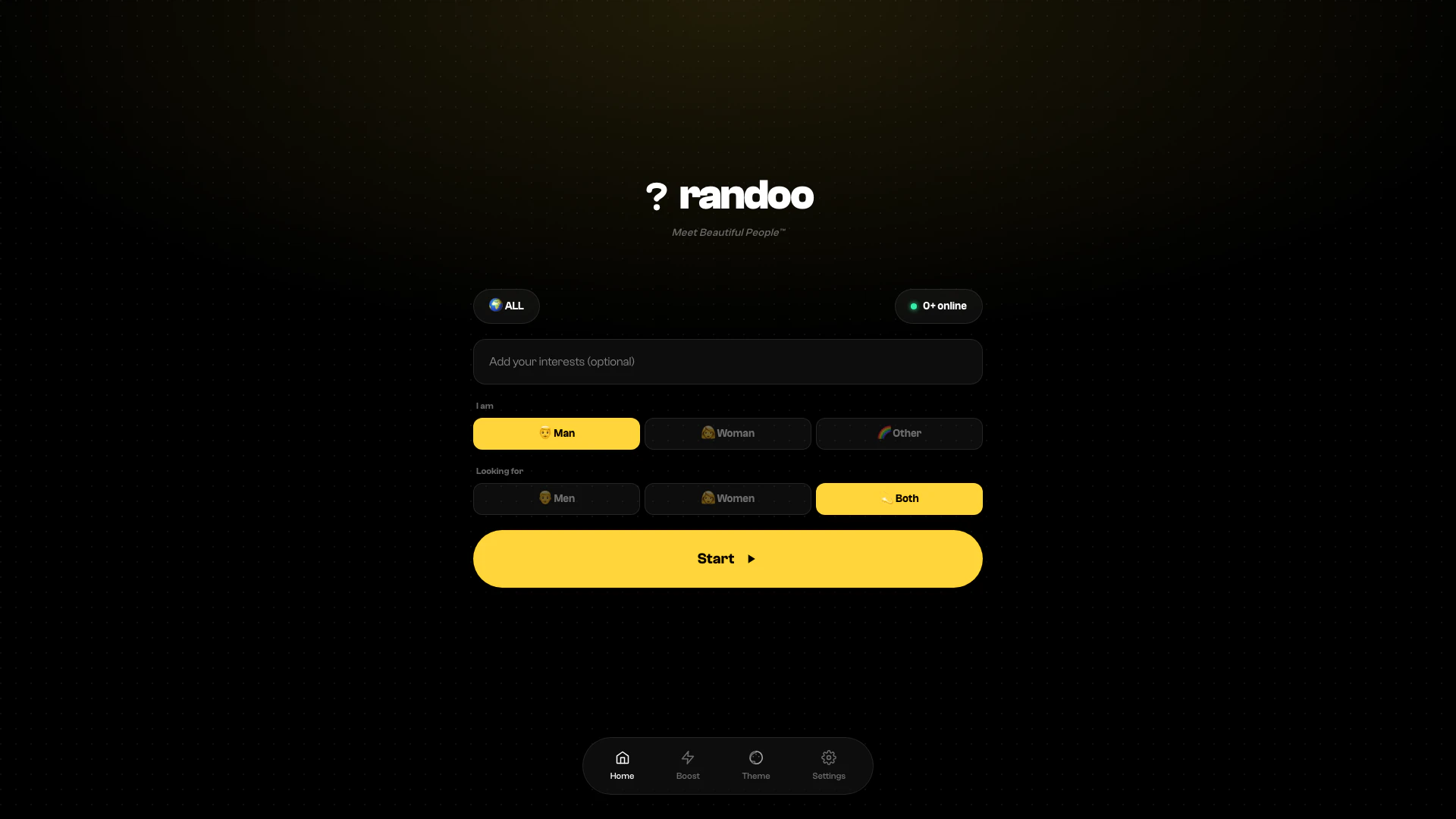 Randoo is a free random video chat[1] platform that allows users to meet strangers instantly and anonymously, without the need for any sign-up. It serves as an excellent alternative to Omegle, offering a unique experience where users can connect with people from around the world. The platform is designed to facilitate spontaneous conversations, making it easy for individuals to engage with others based on their preferences.