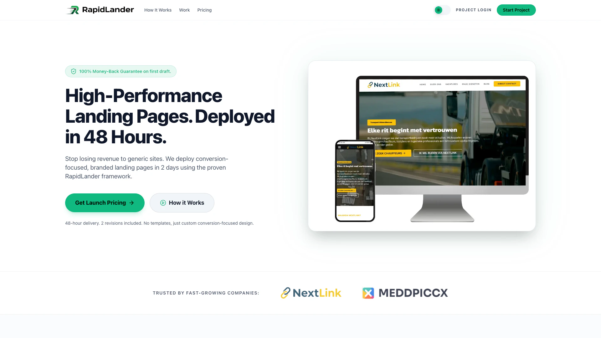 - Fast Deployment: Get a conversion-optimized landing page deployed in just 48 hours, ensuring quick turnaround for your marketing needs.