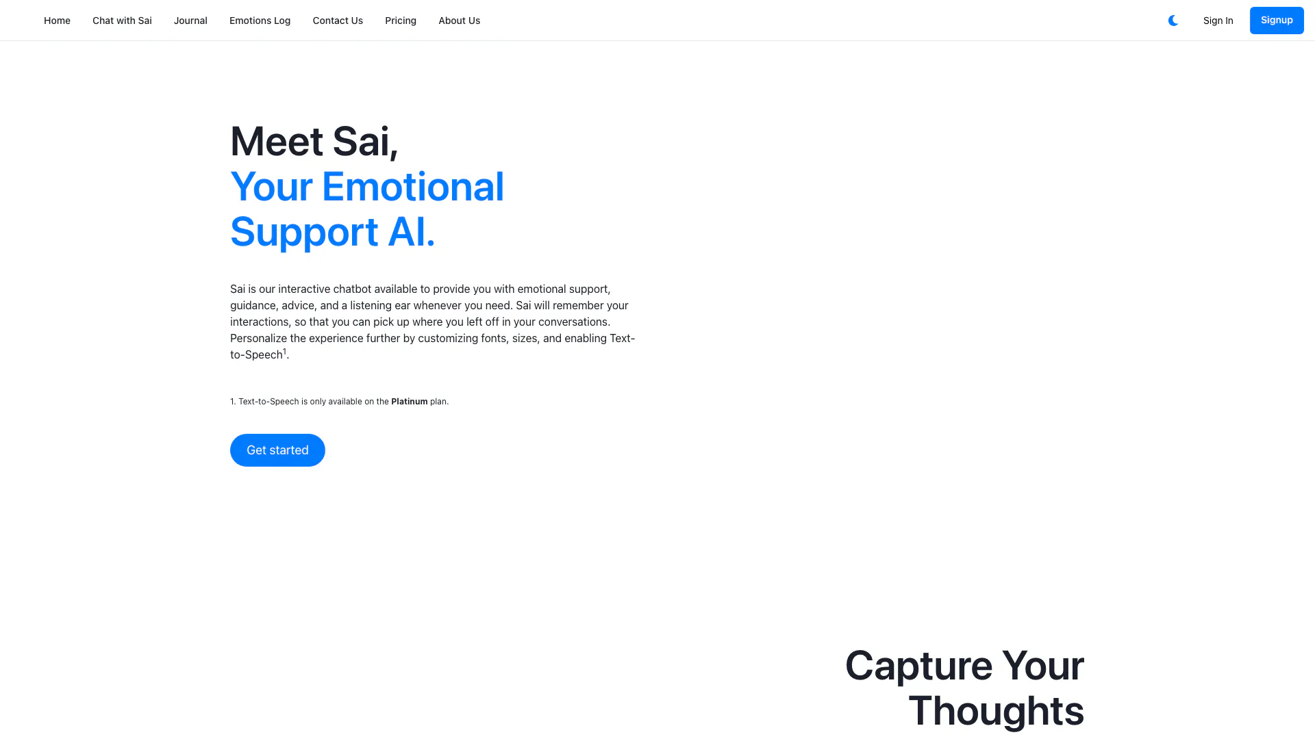 1,000 Interactions with Sai per month, access to a virtual personal journal, no Text-to-Speech (TTS) for Interactions with Sai.