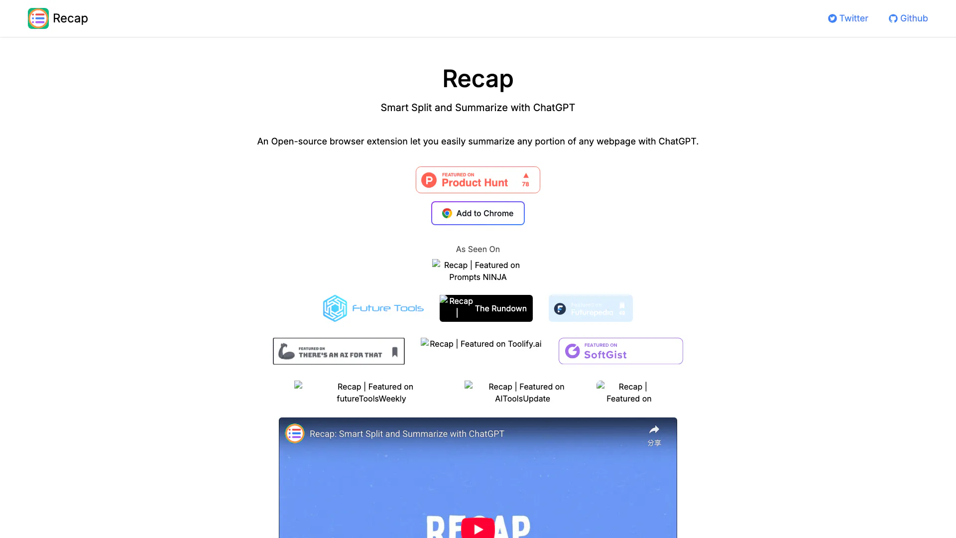 Recap is an open-source browser extension that allows users to easily summarize any portion of any webpage using ChatGPT.
