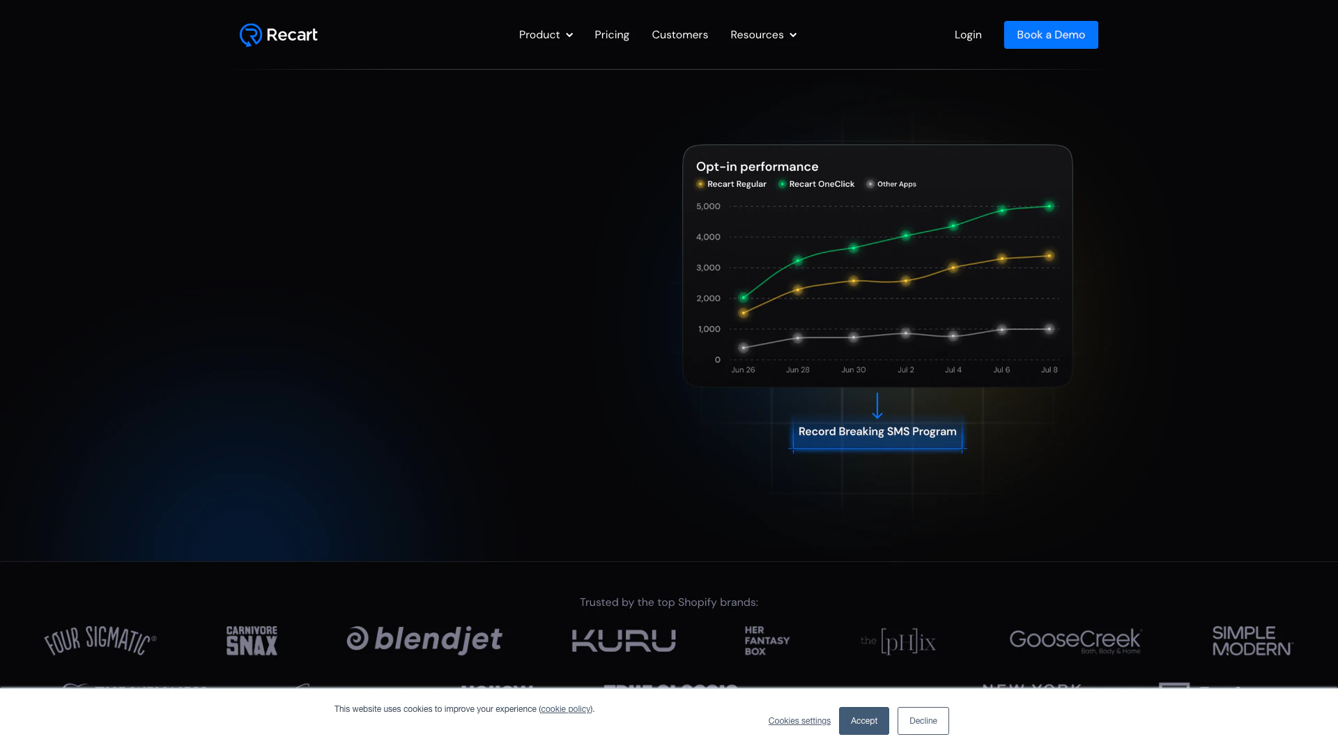 Recart is the first SMS platform that allows shoppers to join your list with a single click, providing industry-leading opt-in rates and record-setting campaigns.