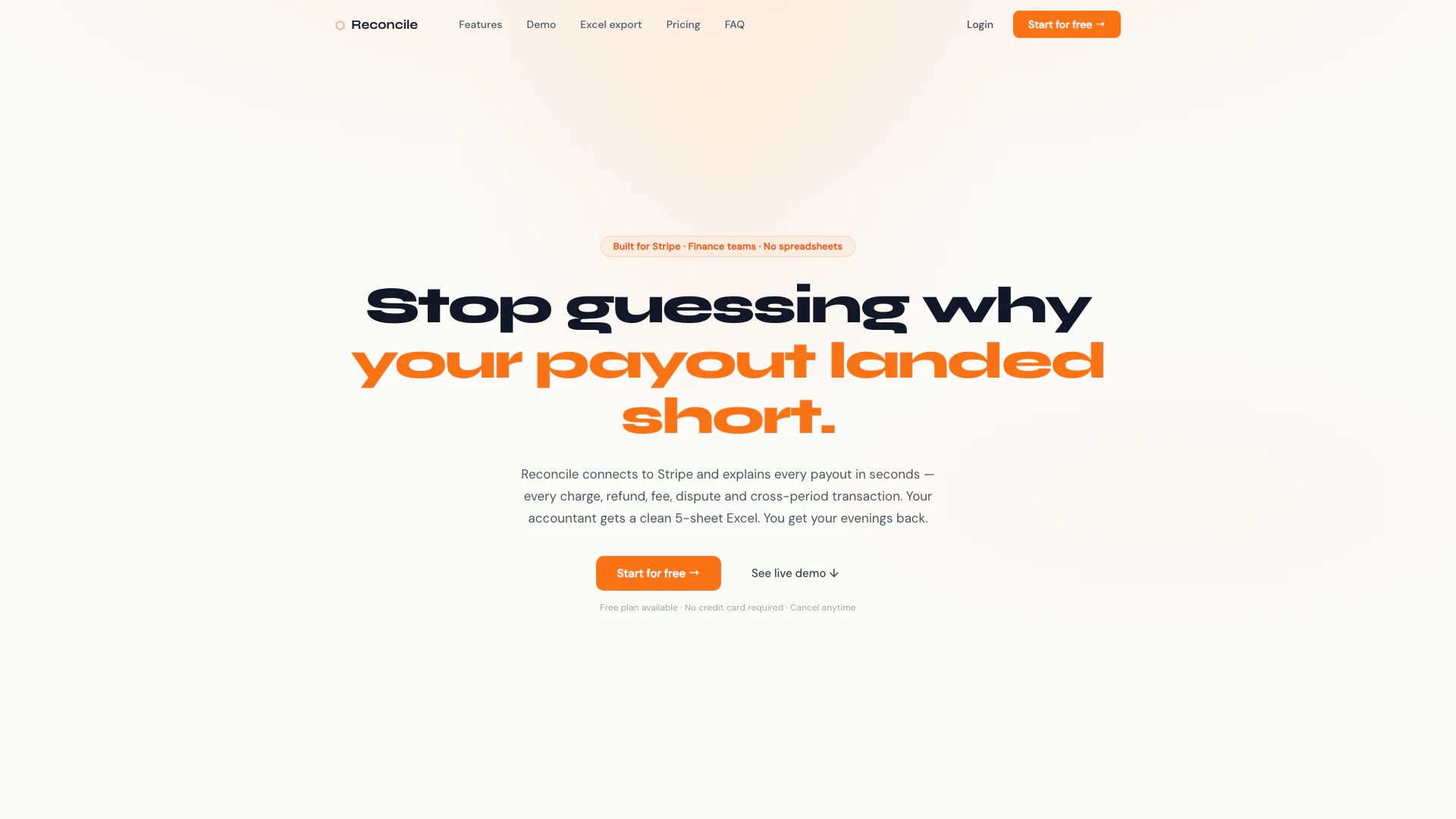 Reconcile Pay is an innovative financial tool designed specifically for businesses using Stripe. It automates the reconciliation of Stripe payouts, providing users with a clear understanding of each payout's composition, including every charge, refund, fee, dispute, and cross-period transaction. This tool eliminates the guesswork often associated with payout discrepancies, allowing finance teams to focus on more strategic tasks. With just a click, users can export a comprehensive 5-sheet Financial Close Excel workbook, streamlining the financial reporting process. Reconcile Pay is built for finance teams seeking efficiency and accuracy in their reconciliation processes.