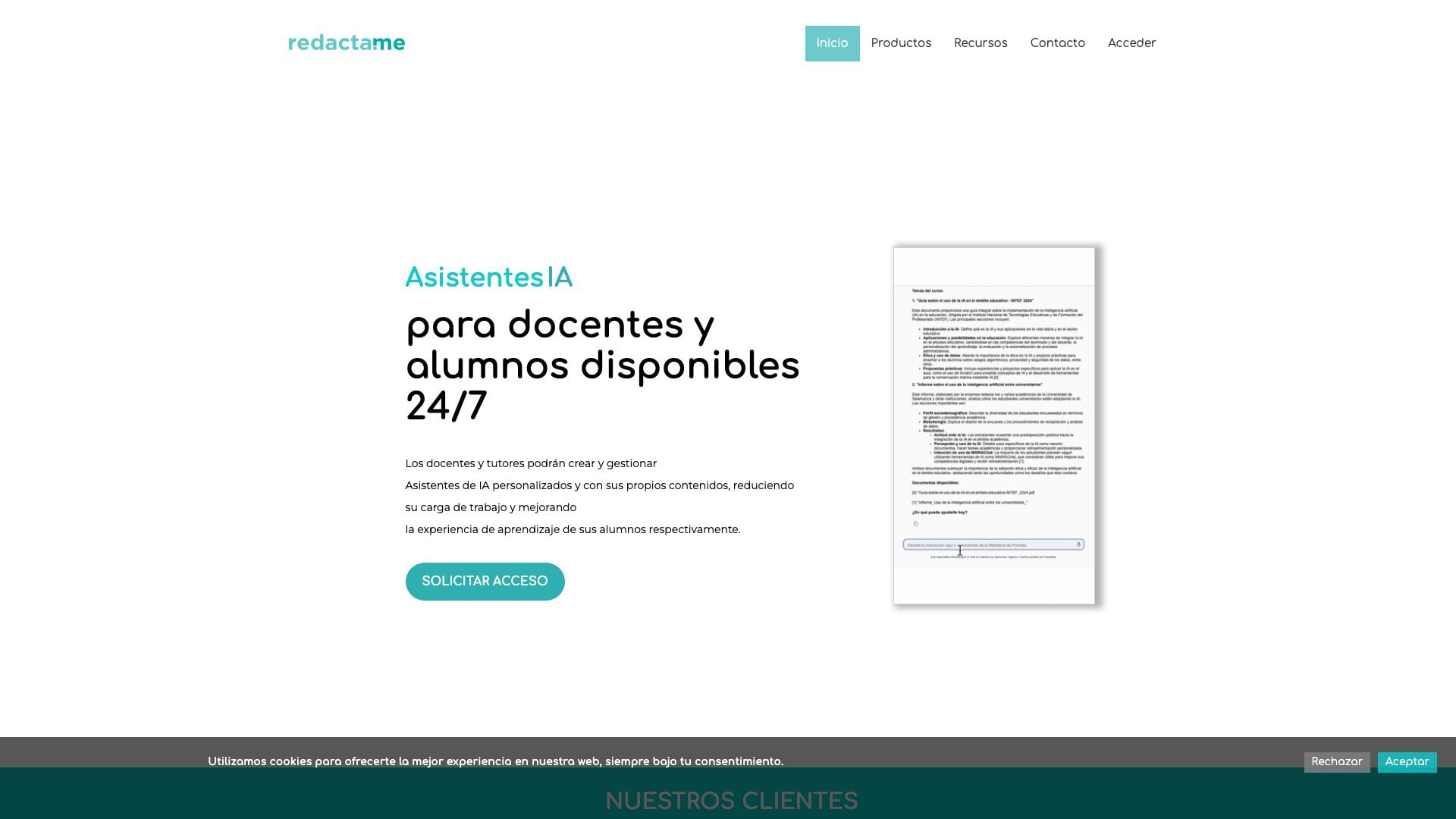 Redacta me is a platform designed to help teachers and students create, personalize, and manage AI assistants, to reduce the workload of teachers and enhance the learning experience of students.
