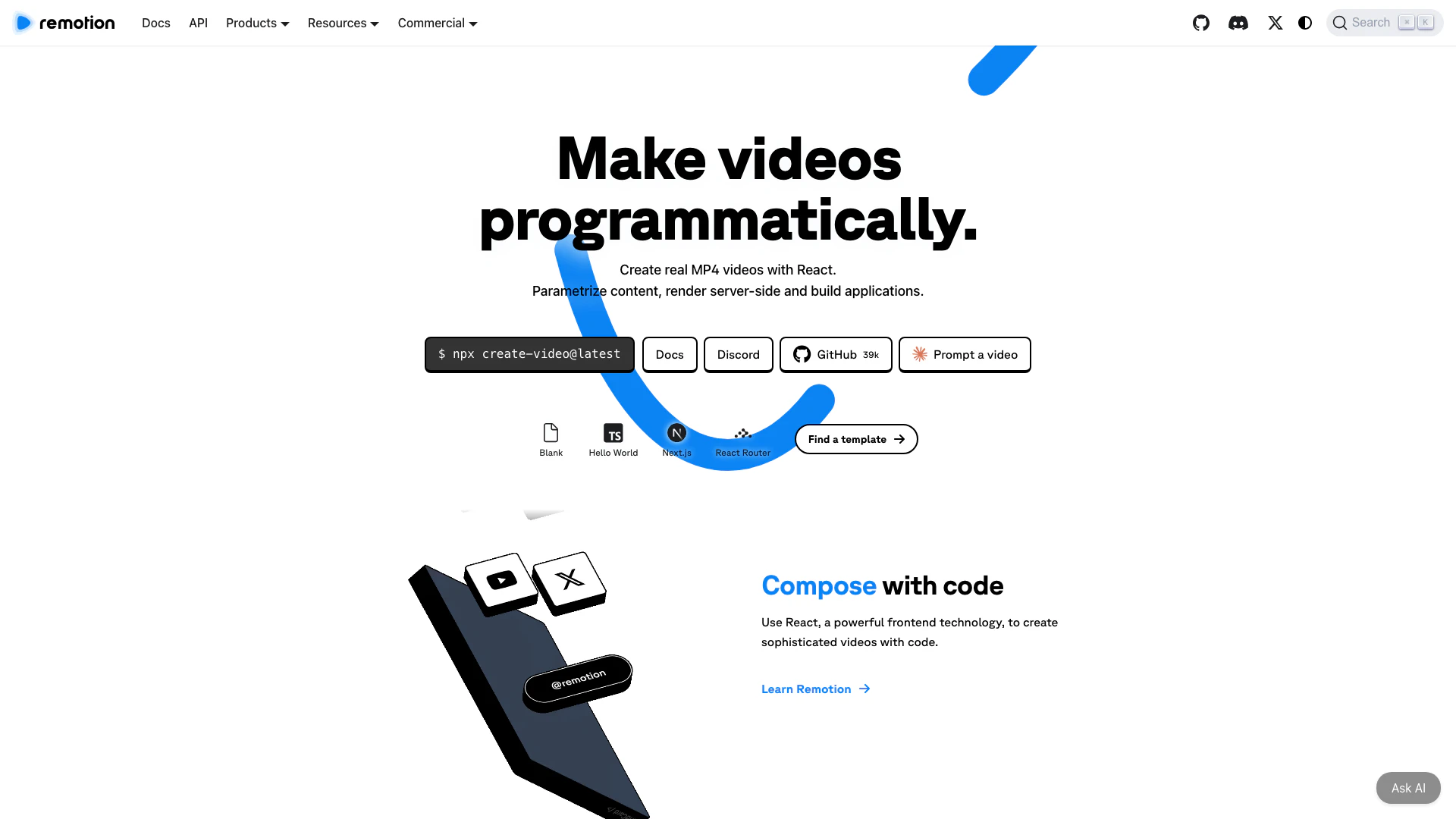 - Programmatic Video Creation: Remotion allows users to create real MP4 videos programmatically using React, enabling dynamic and customizable video content.