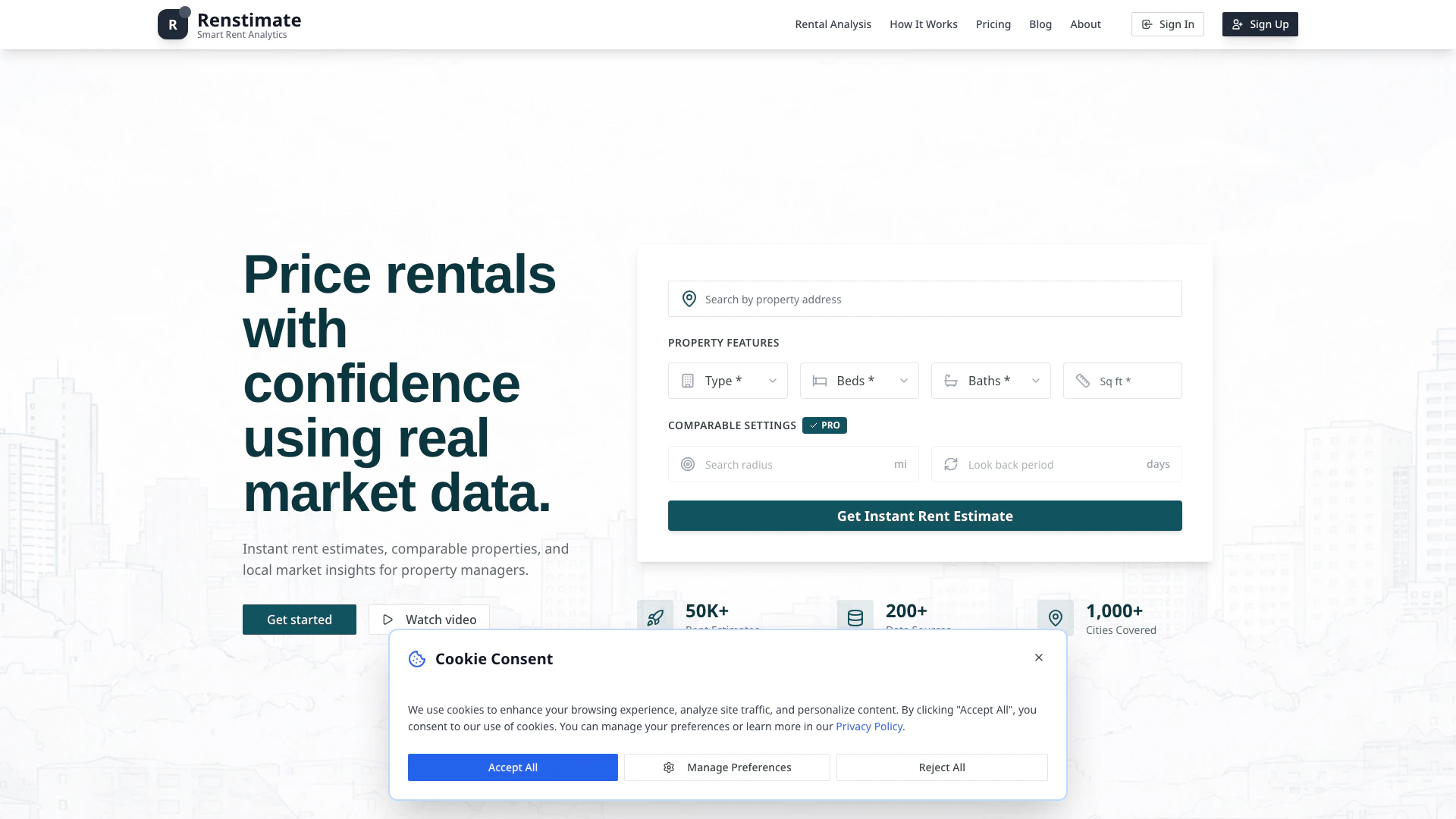 Renstimate is an advanced AI-powered[2] rent estimation tool designed to provide instant and accurate rental value estimates for properties across the United States. Utilizing comprehensive market data, Renstimate analyzes various factors to deliver reliable rental estimates, enabling property managers, real estate investors, and landlords to make informed pricing decisions. The platform stands out for its fast processing capabilities, delivering results in seconds, and its ability to draw from over 200 data sources covering more than 1,000 cities. Renstimate is tailored to meet the needs of professionals in the real estate sector who require precise and actionable insights into rental markets.