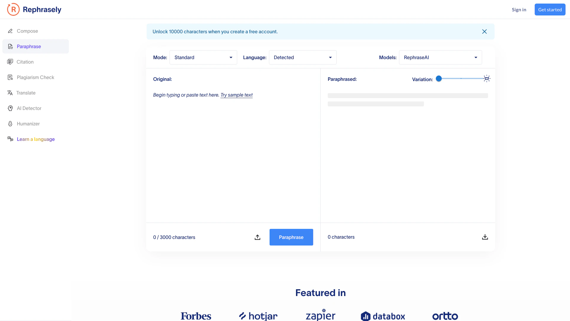 - Visit the Rephrasely website and sign up for a free account to unlock features.