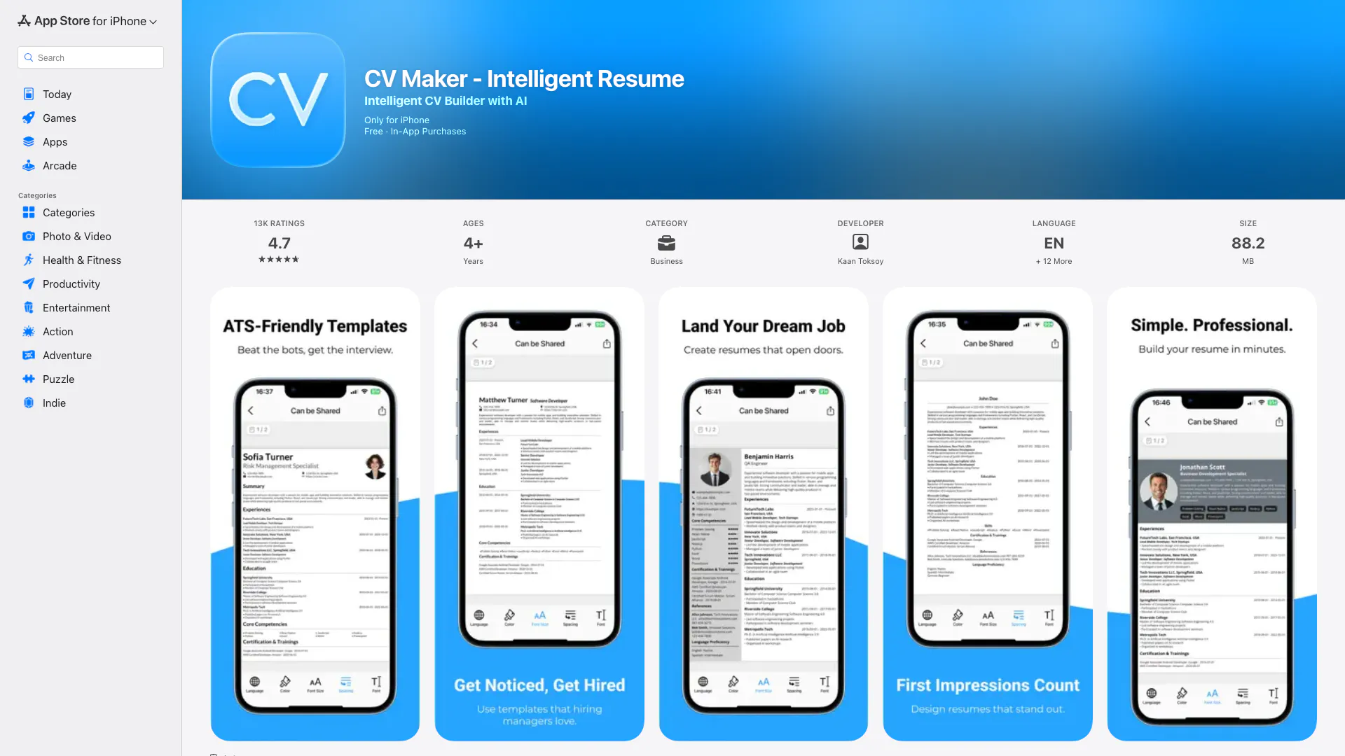 - Ease of Use: The app is designed to guide users step by step, making it simple and effortless to create a standout resume in just a few minutes.