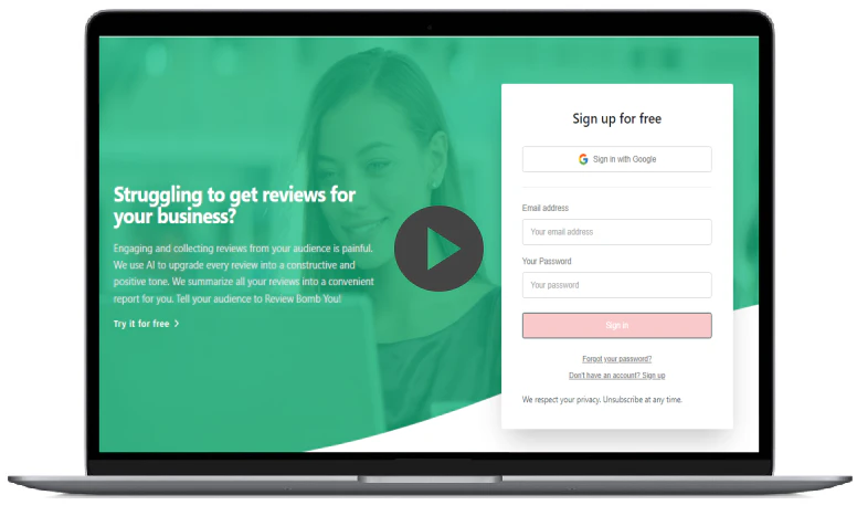 Review Bomb Me is an AI-powered platform that helps collect reviews from your audience and turns them into constructive and positive feedback.