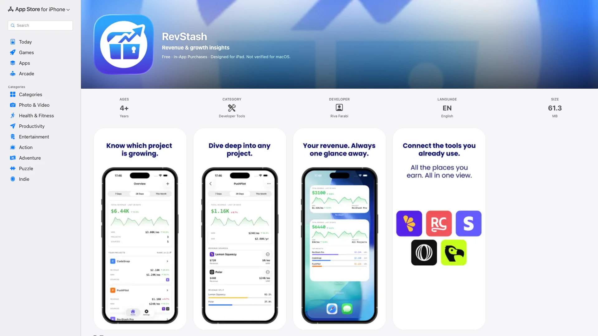 - Integration with Popular Tools: RevStash integrates seamlessly with platforms like RevenueCat, LemonSqueezy, and Stripe, making it easy for indie founders to connect their existing revenue sources.
