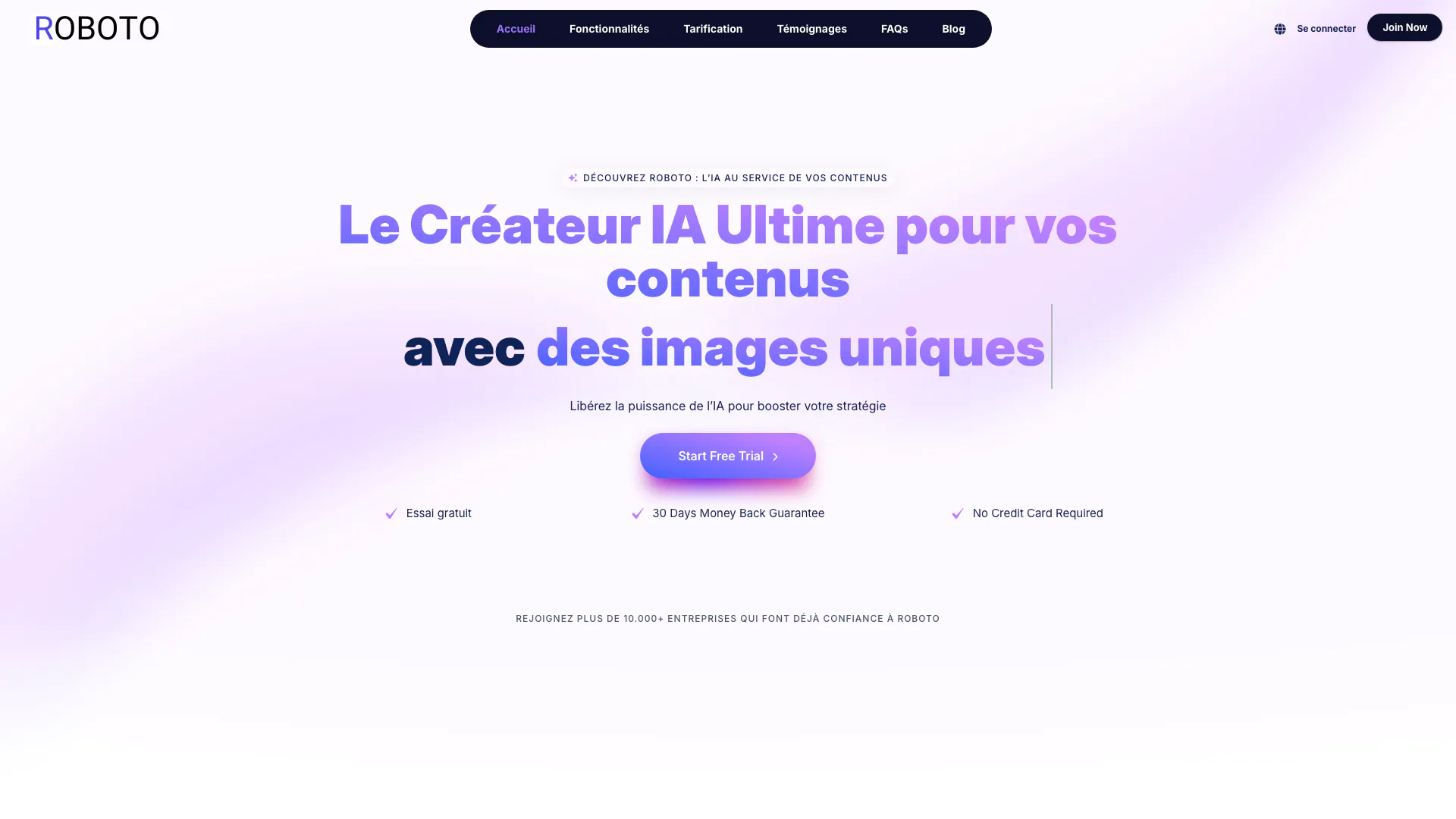 Roboto G N Rateur De Contenu is an advanced AI-powered content creation platform designed to streamline the process of generating high-quality text, images, and videos for marketing and creative purposes. This innovative tool allows users to harness the power of artificial intelligence to produce captivating content quickly and efficiently, catering to a wide range of needs from blog posts to social media updates. With its user-friendly interface and a variety of templates, Roboto helps businesses and individuals enhance their marketing strategies and improve their content quality.