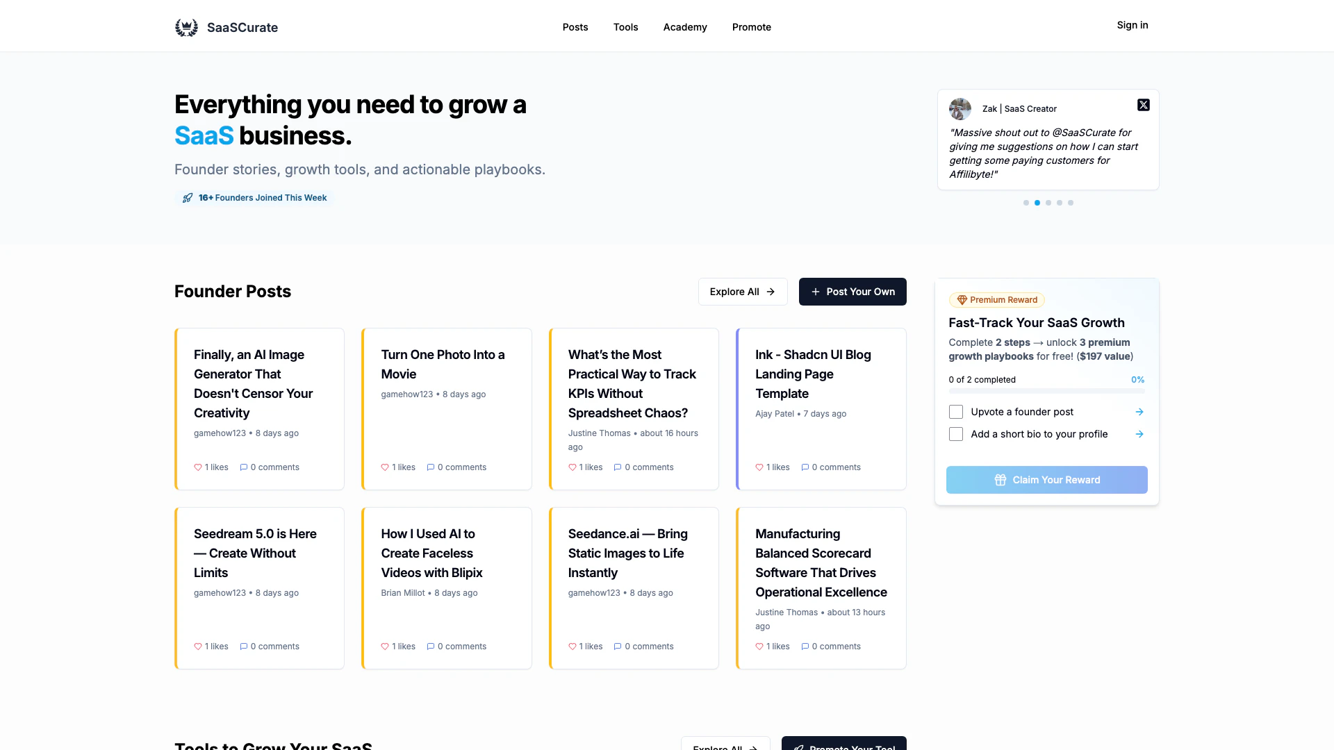- Targeted Learning Materials: SaaSCurate provides tailored educational content through its academy, focusing on practical strategies for launching and scaling SaaS products.