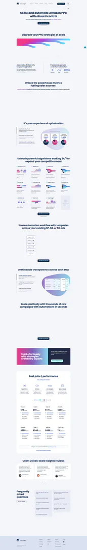 Scale Insights is an advanced automation tool designed specifically for Amazon PPC (Pay-Per-Click) advertising. It enables users, including aggregators, advertising agencies, and high-revenue sellers, to optimize their advertising strategies efficiently and effectively. With its powerful algorithms and customizable workflows, Scale Insights allows users to automate their PPC campaigns, making data-driven decisions that enhance profitability and reduce advertising costs. The tool is engineered by experienced Amazon FBA sellers who have collectively generated over $200 million in revenue, ensuring that it meets the needs of serious Amazon sellers looking to scale their businesses sustainably.