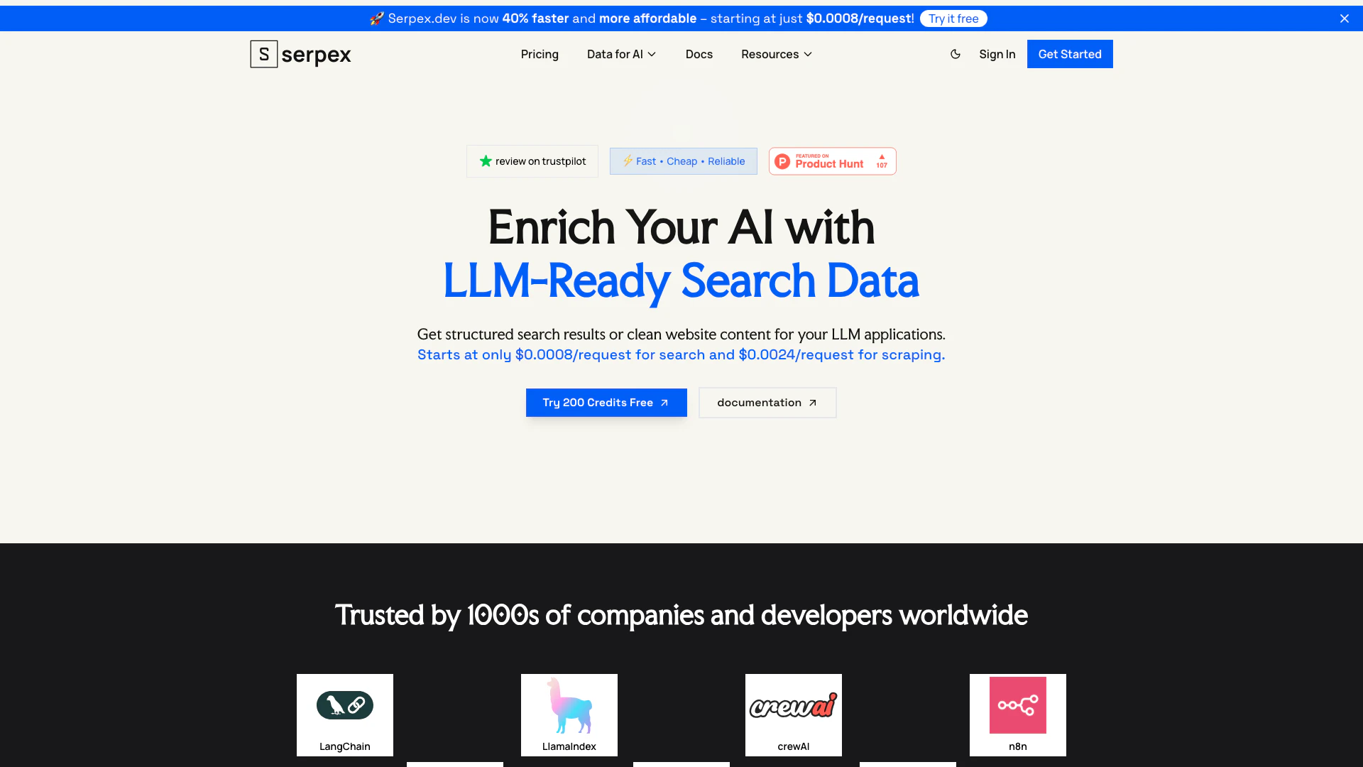 - Fast and Affordable Performance: Serpex is now 40% faster and starts at just $0.0008 per request, making it a cost-effective solution for real-time web search.