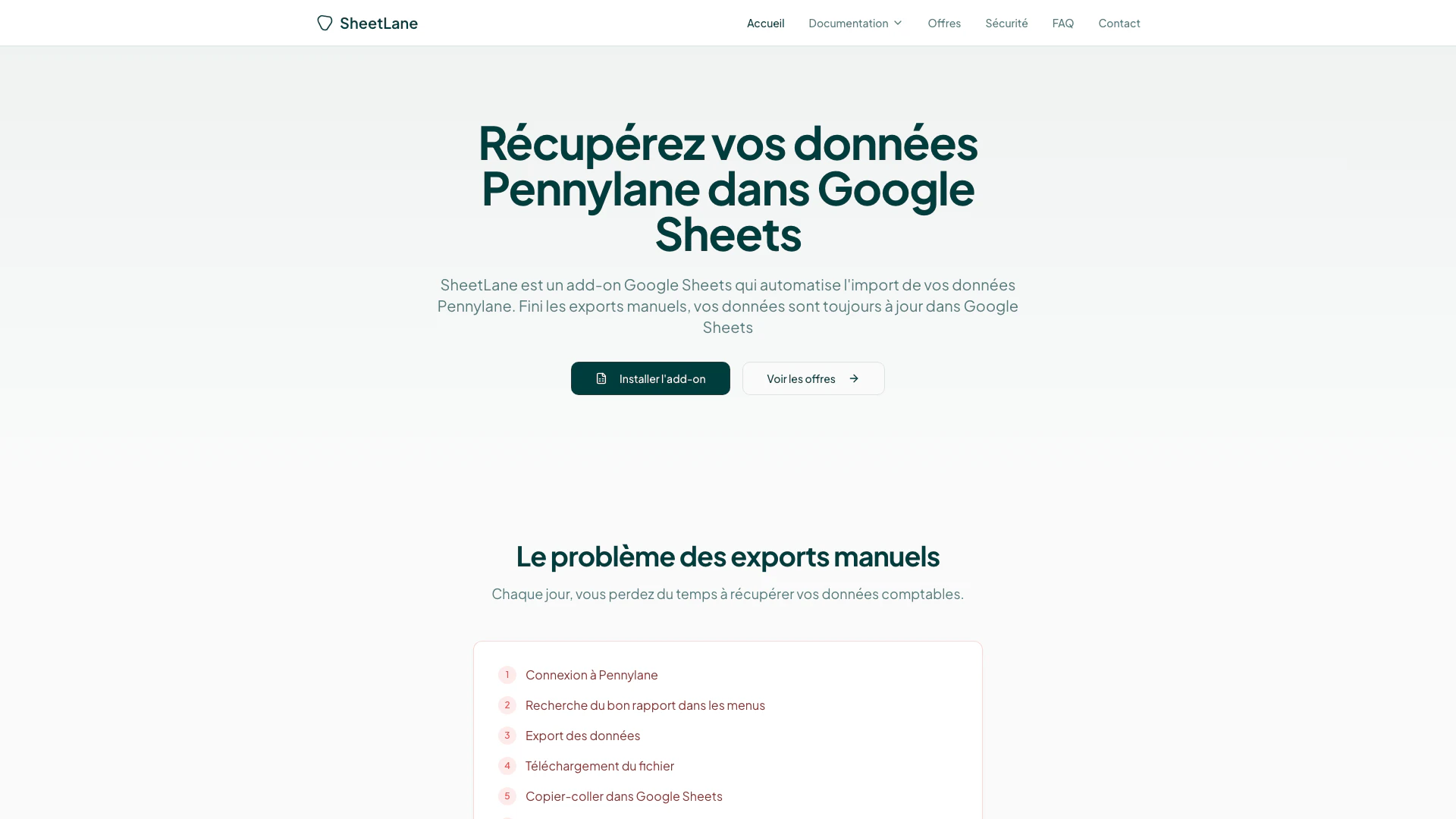 Sheetlane is a Google Sheets[1] add-on[2] designed to automate the export of your Pennylane data. This tool eliminates the need for manual exports, allowing users to synchronize their accounting data seamlessly. With Sheetlane, your financial information is always up-to-date in Google Sheets, making it a valuable asset for anyone looking to streamline their data management processes.