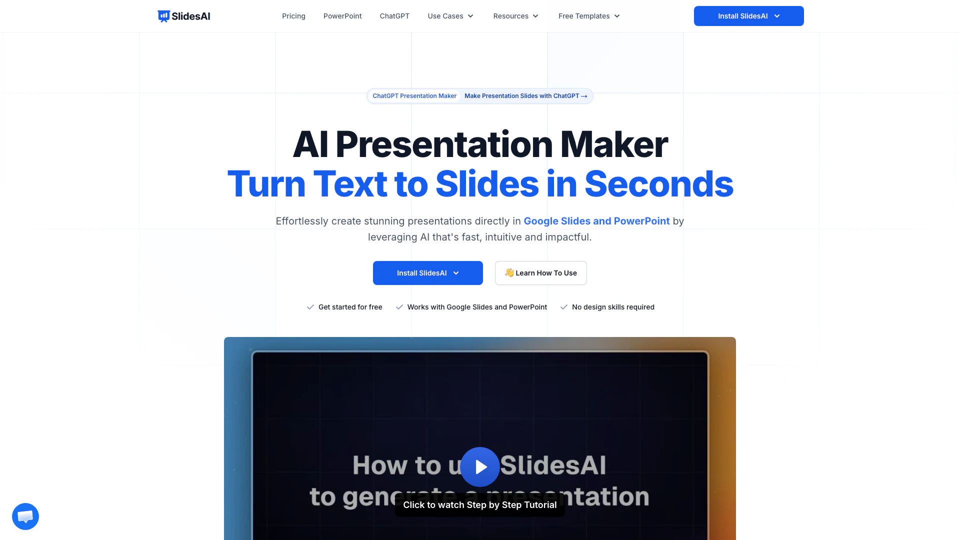 - Install SlidesAI from the Google Slides Extension or PowerPoint Add-ins Store.