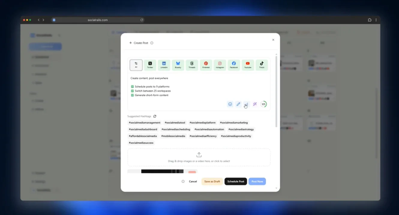 - Multi-Platform Posting: Easily schedule and post content to 9 different social media platforms from a single dashboard, saving time and effort.