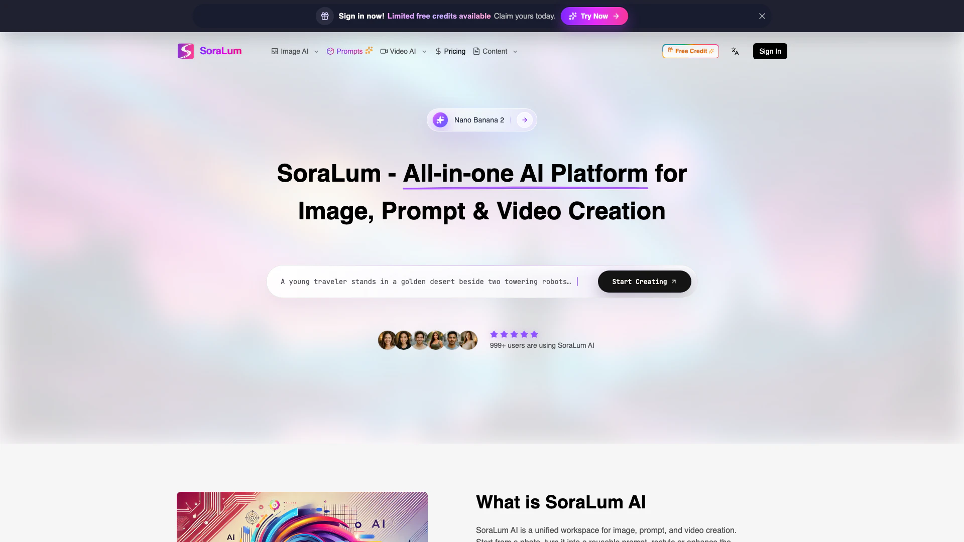 Soralum is an innovative AI platform designed to streamline the creation of images, prompts, and videos within a single, unified workspace. It enables users to generate, edit, restyle, and animate content quickly and efficiently using advanced image-to-image and text-to-video tools. By eliminating the need to switch between multiple applications, Soralum provides a seamless workflow that is especially beneficial for non-designers, allowing them to produce professional-quality results with ease.