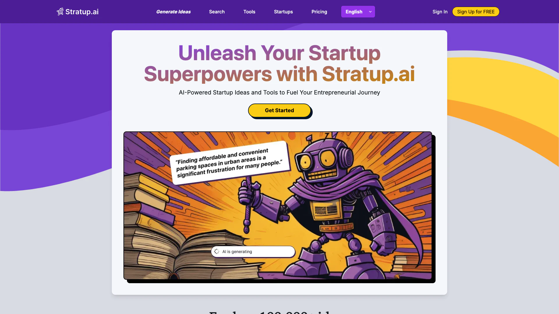 Stratup.ai is an innovative AI-powered[1] tool designed to assist entrepreneurs and business enthusiasts in generating unique and creative startup ideas in seconds. By leveraging advanced artificial intelligence, Stratup.ai provides a platform where users can explore a vast database of over 100,000 startup concepts[3]. This tool not only helps in brainstorming new ideas but also enables users to uncover untapped market opportunities[4], making it an essential companion for anyone looking to embark on an entrepreneurial journey.