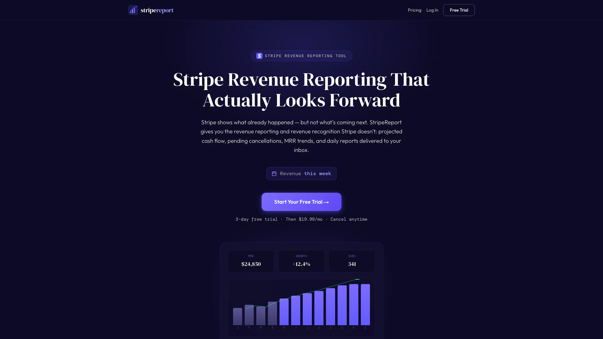 Stripereport is a comprehensive revenue reporting and recognition tool specifically designed for businesses that utilize Stripe for their subscription services. It simplifies the process of tracking projected revenue, Monthly Recurring Revenue (MRR) trends, churn analytics, and cash flow forecasts. By addressing the limitations of Stripe's built-in revenue reporting, Stripereport provides users with actionable insights into their subscription metrics, allowing businesses to make informed decisions and enhance their financial planning.