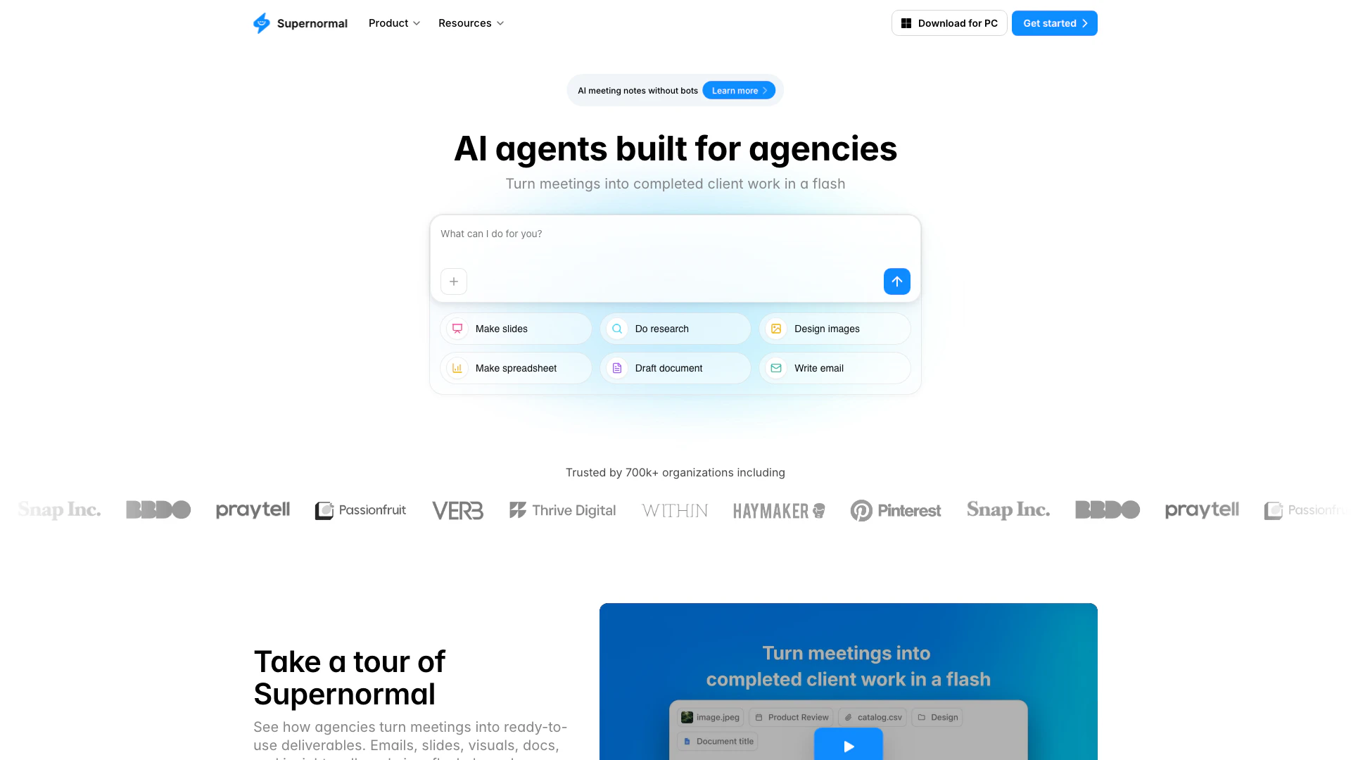 - AI-Driven Efficiency: Supernormal utilizes AI to transform meetings into actionable deliverables quickly, enhancing productivity for agencies.