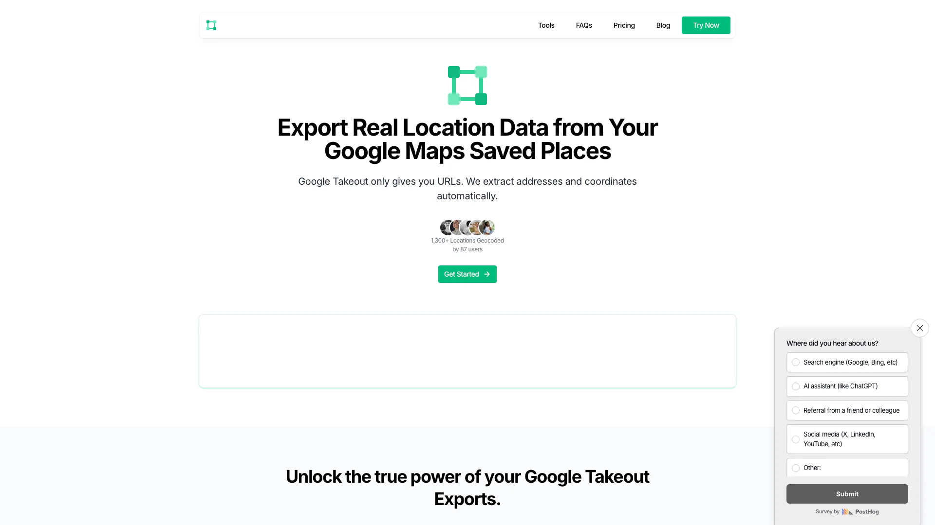 Takeout-tools is an innovative online tool designed to export real location data from your Google Maps saved places. Unlike Google Takeout, which only provides URLs, Takeout-tools automatically extracts addresses and coordinates, enabling users to transform unhelpful URLs into usable location data. With a simple interface and powerful features, Takeout-tools allows users to export their data in various formats including CSV, JSON, GPX, KML, and GeoJSON, making it suitable for mapping tools, GIS applications, and spreadsheets.